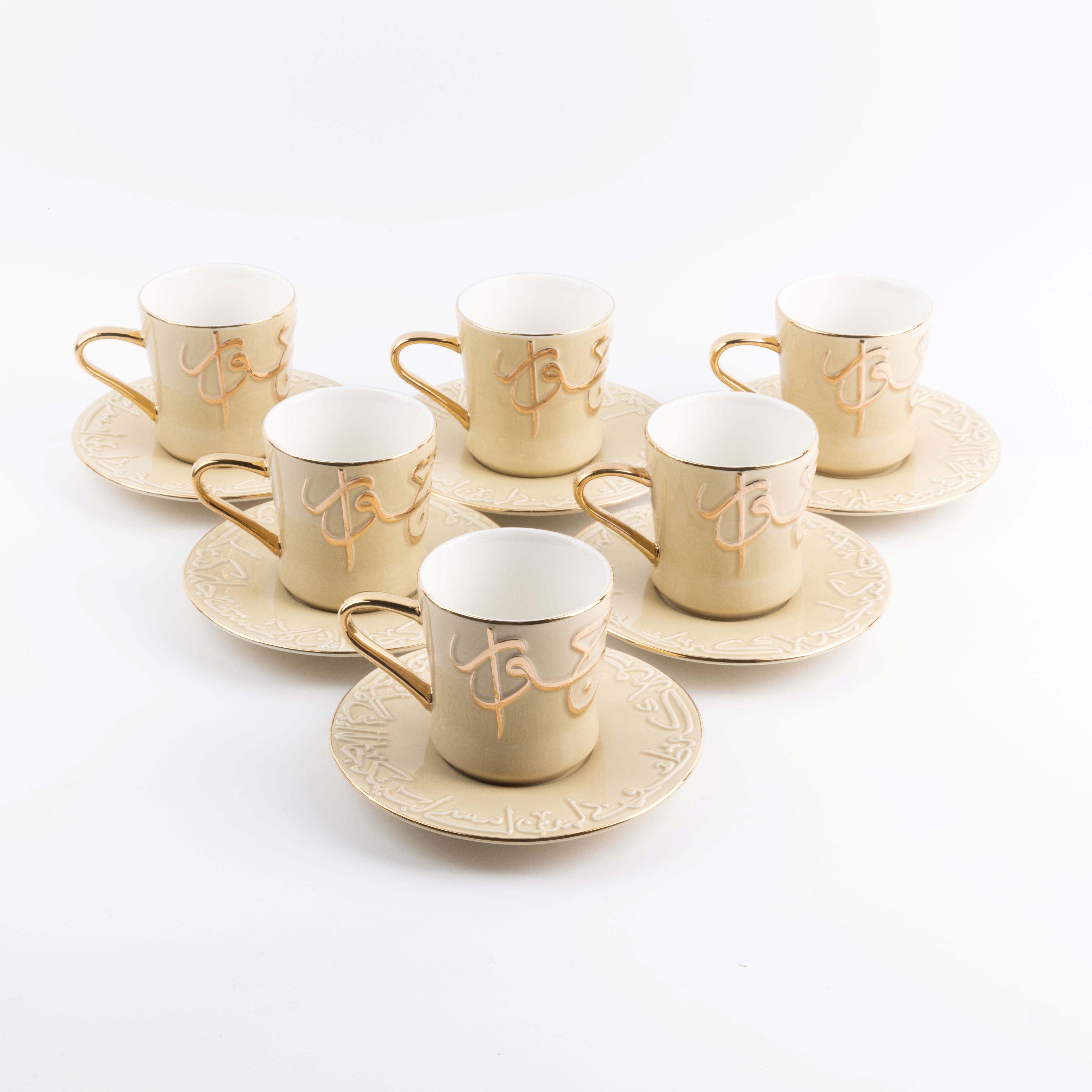Porcelain Tea Set 12 Pcs From Jiwar - Ivory + Gold
