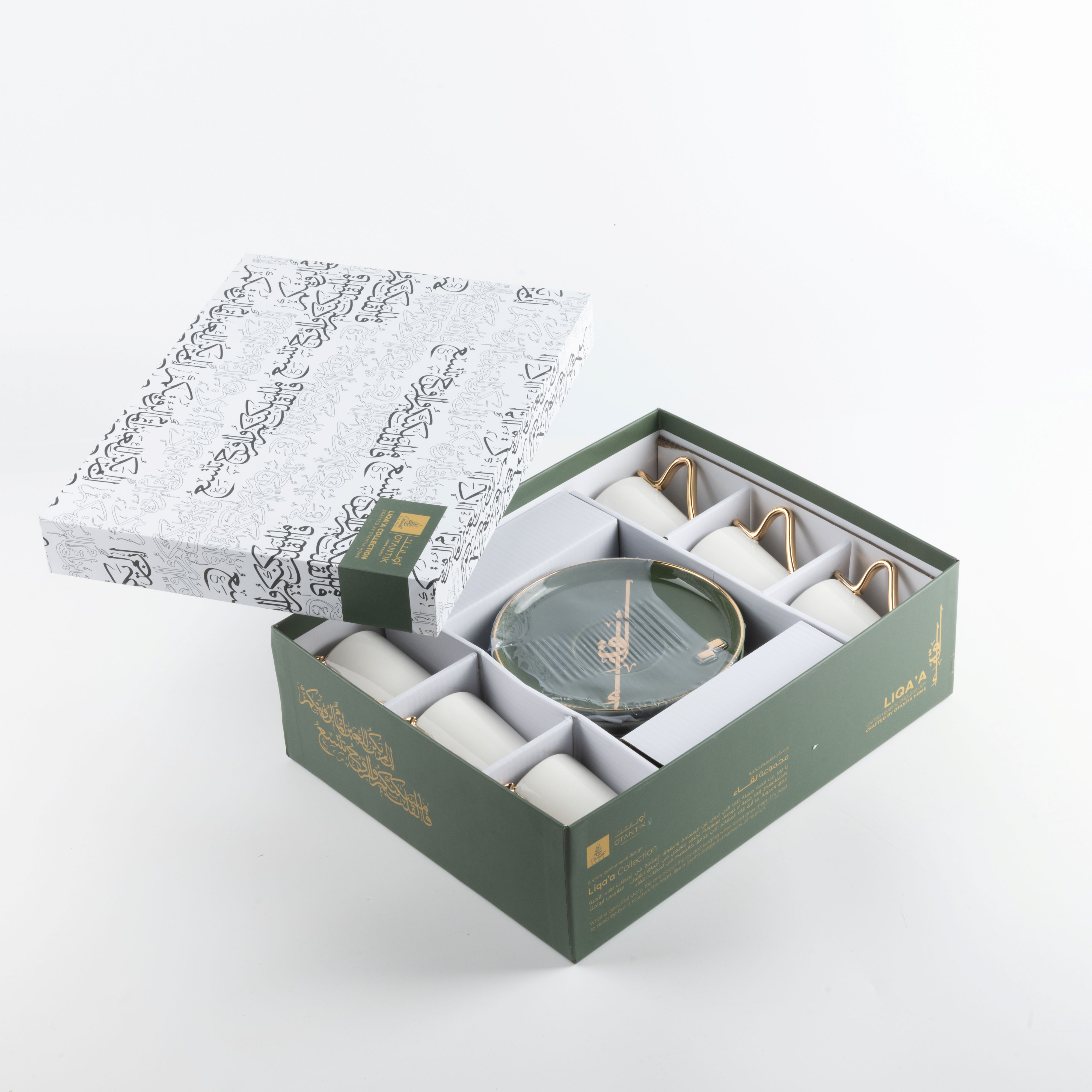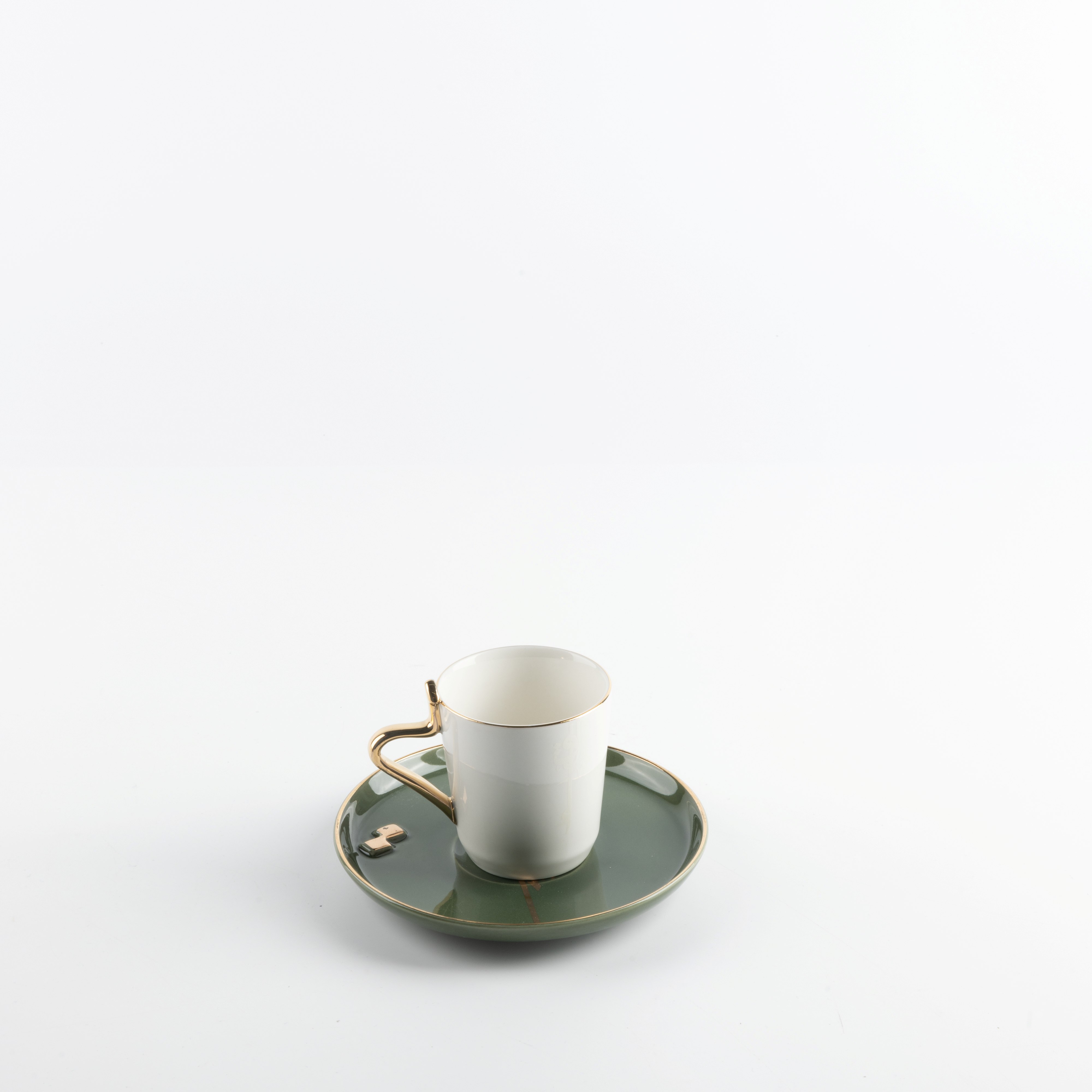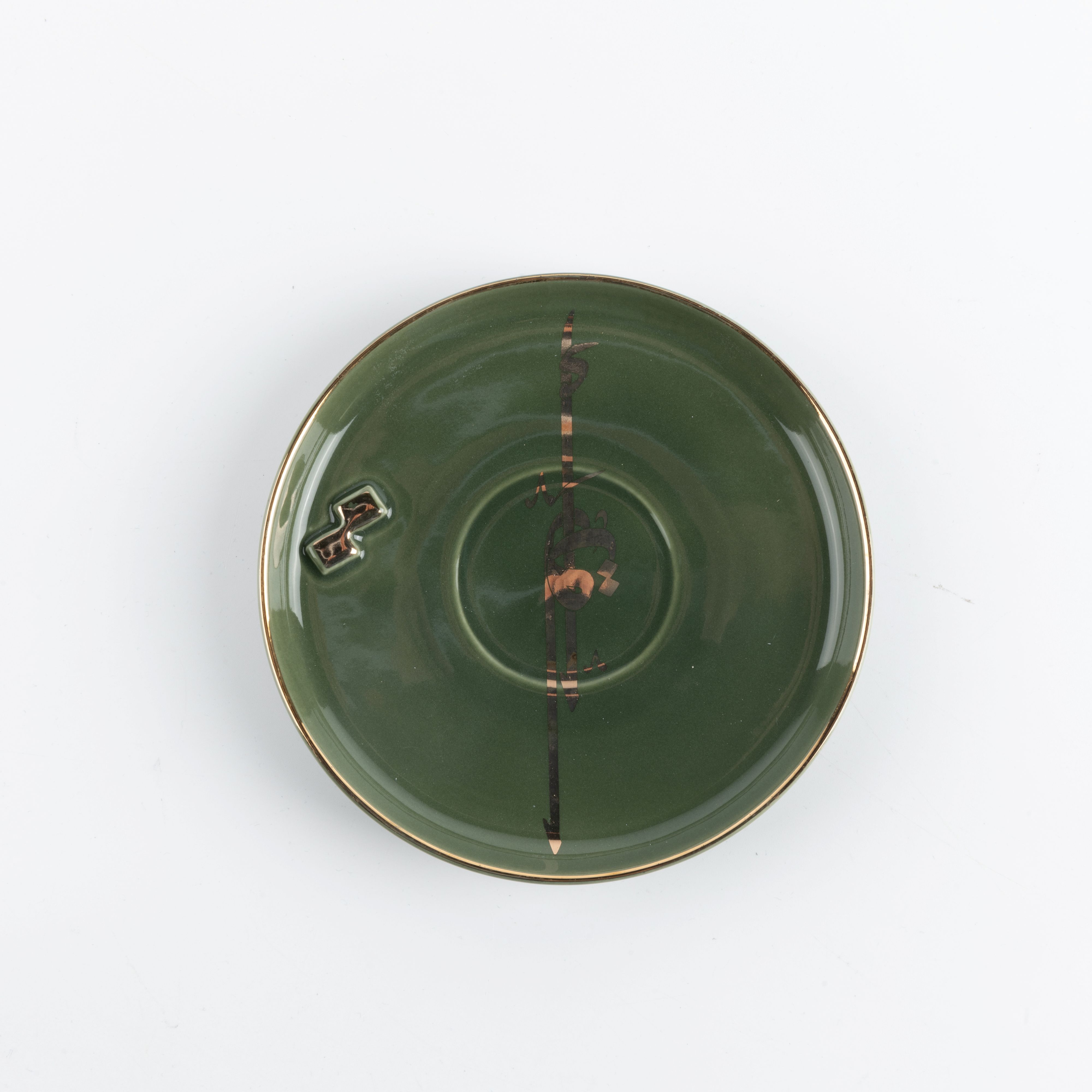 Porcelain Tea Set 12 Pcs From Liqaa - Olive + Gold