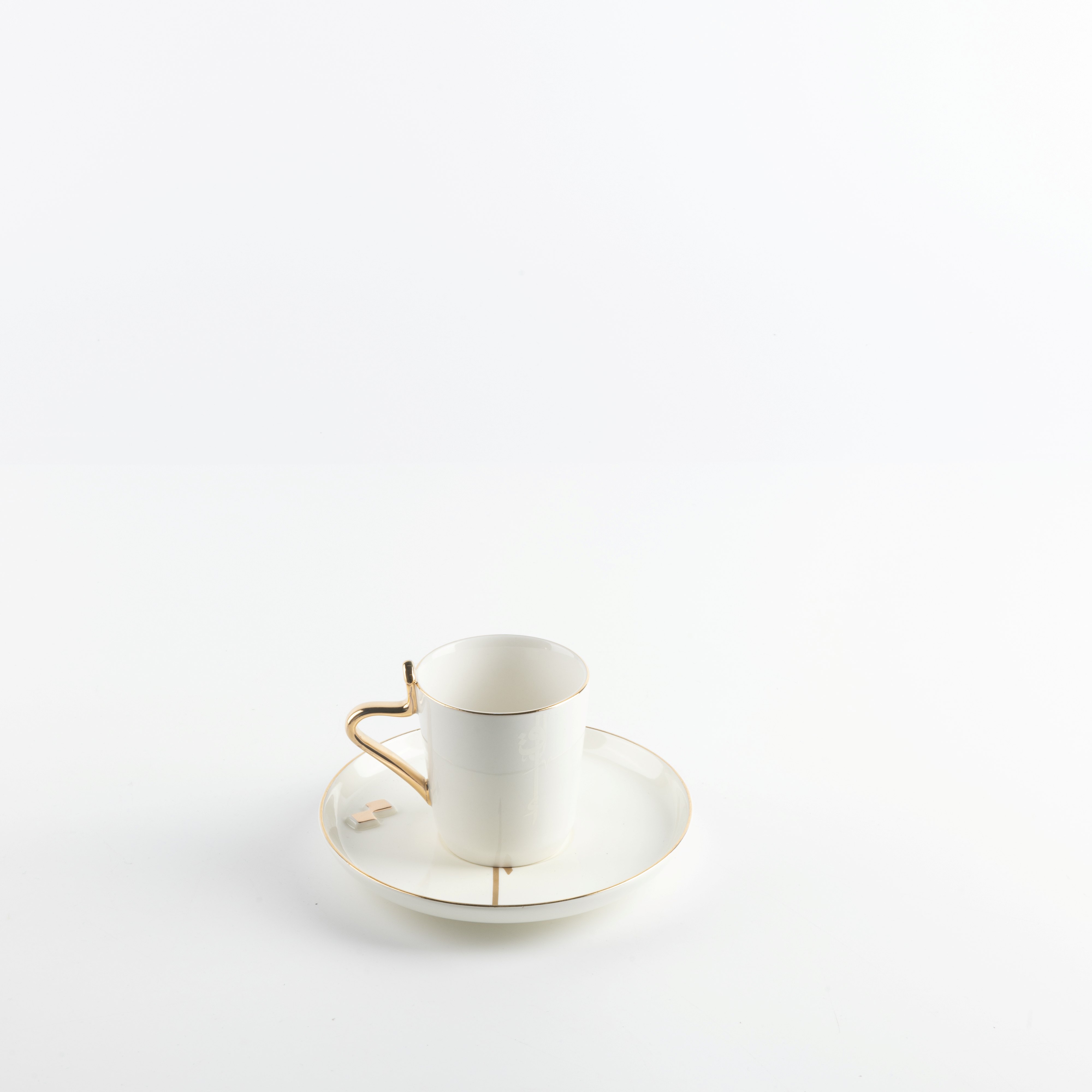 Porcelain Tea Set 12 Pcs From Liqaa - Pearl White + Gold