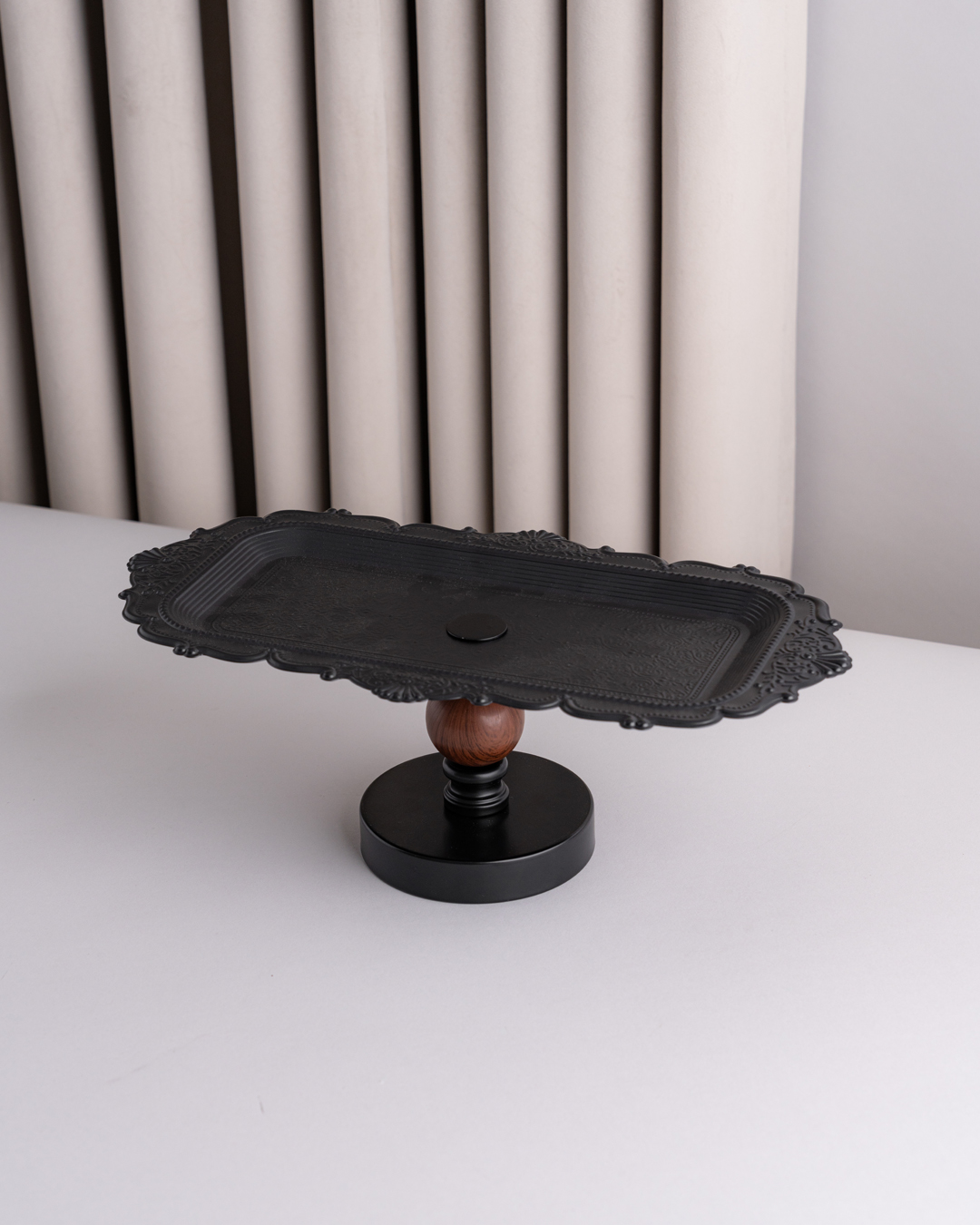 This tray features an elegant and attractive design that makes it an ideal choice for serving sweets or food on special occasions. It comes in an elegant black color with embossed details, and a wooden base adds a warm and modern touch. It's perfect for use at dinner parties, birthdays, or as a statement piece on the dining table. Easy to clean and can be used to serve a variety of dishes.