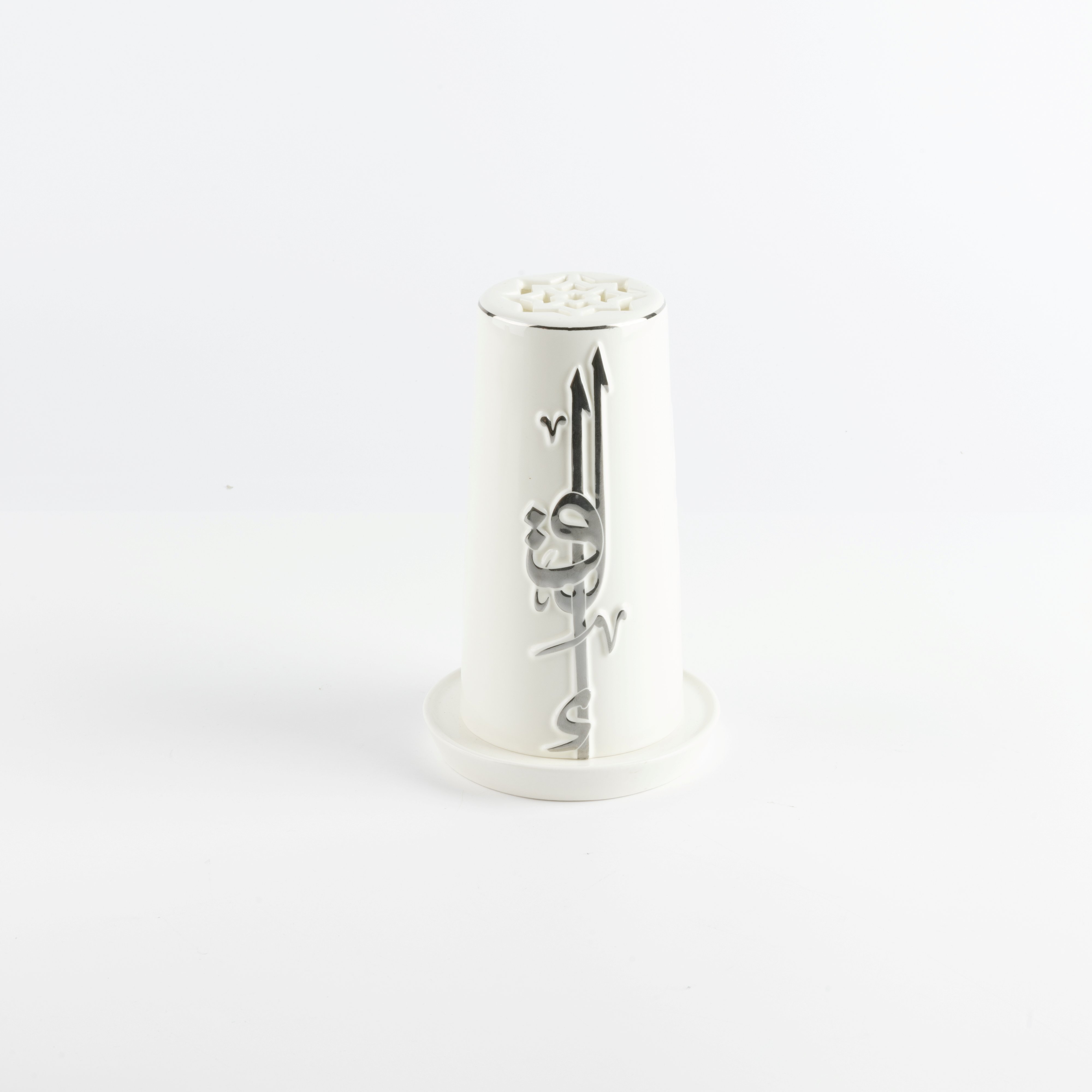 Small Electronic Candle From Liqaa - Pearl White + Silver