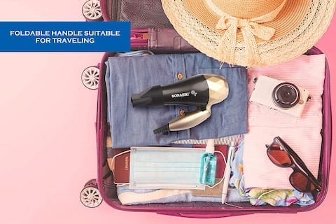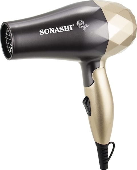 The Sonashi portable hair dryer is an ideal choice for travelers thanks to its compact, foldable design and ease of use. With a power of 1200 watts, it provides you with fast and effective styling. It comes in gold and black to add a touch of elegance. Enjoy perfectly styled hair anywhere and anytime with this practical and stylish dryer