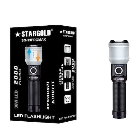 STARGOLD Rechargeable LED Flashlight with 12000mAh Lithium Battery 30W Corrosion/Water/Shock Resistant