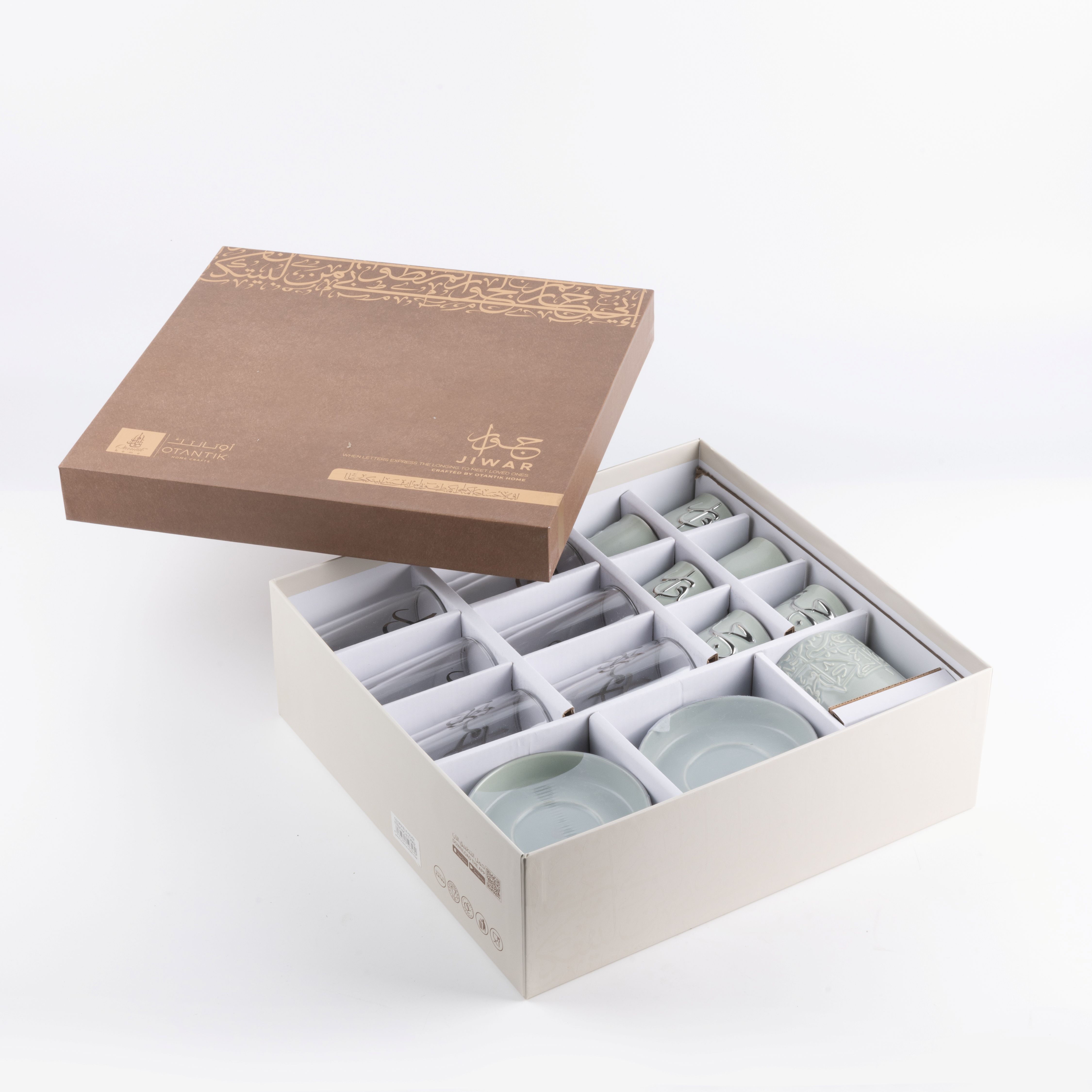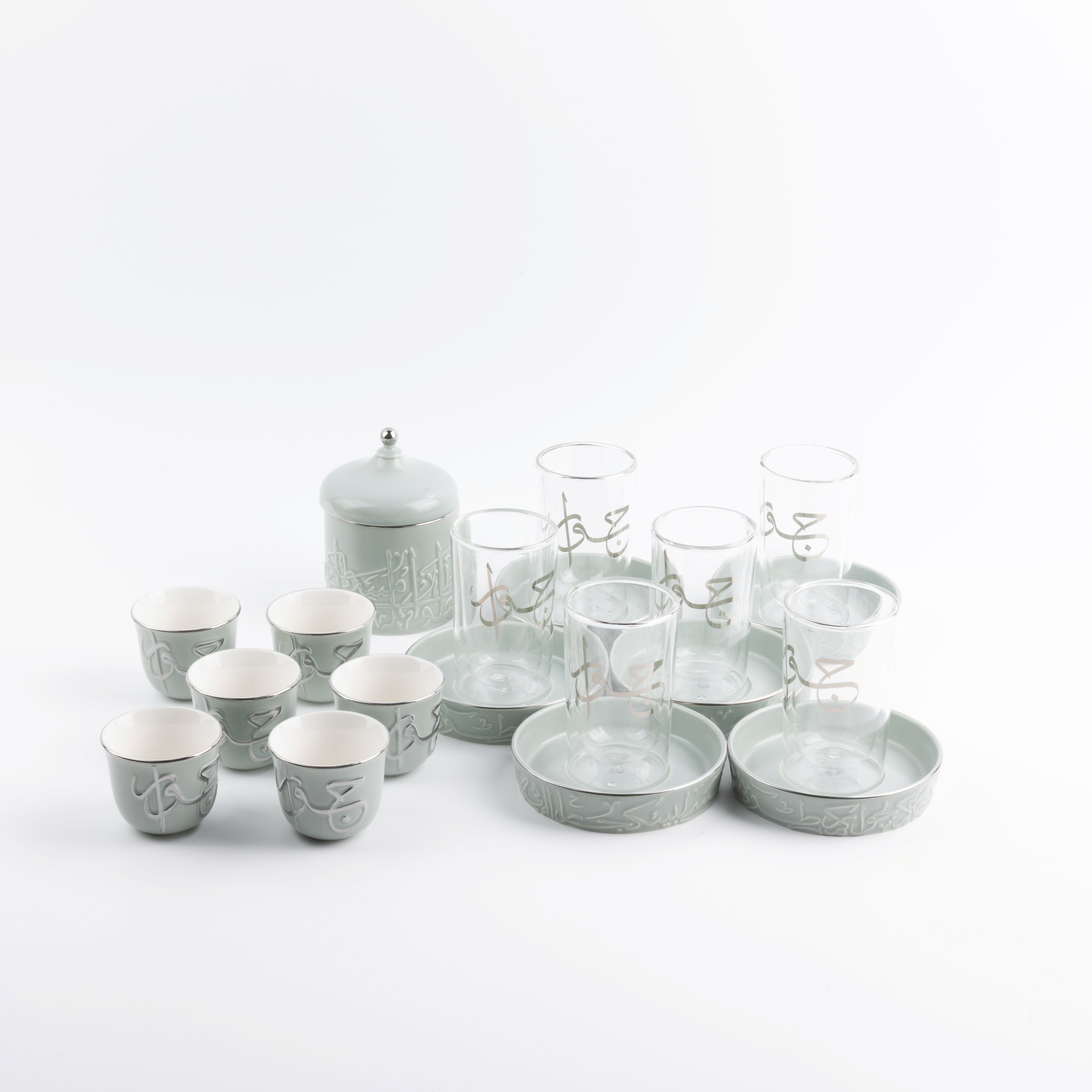 Tea And Arabic Coffee Set 19 Pcs From Jiwar - Light Green + Silver
