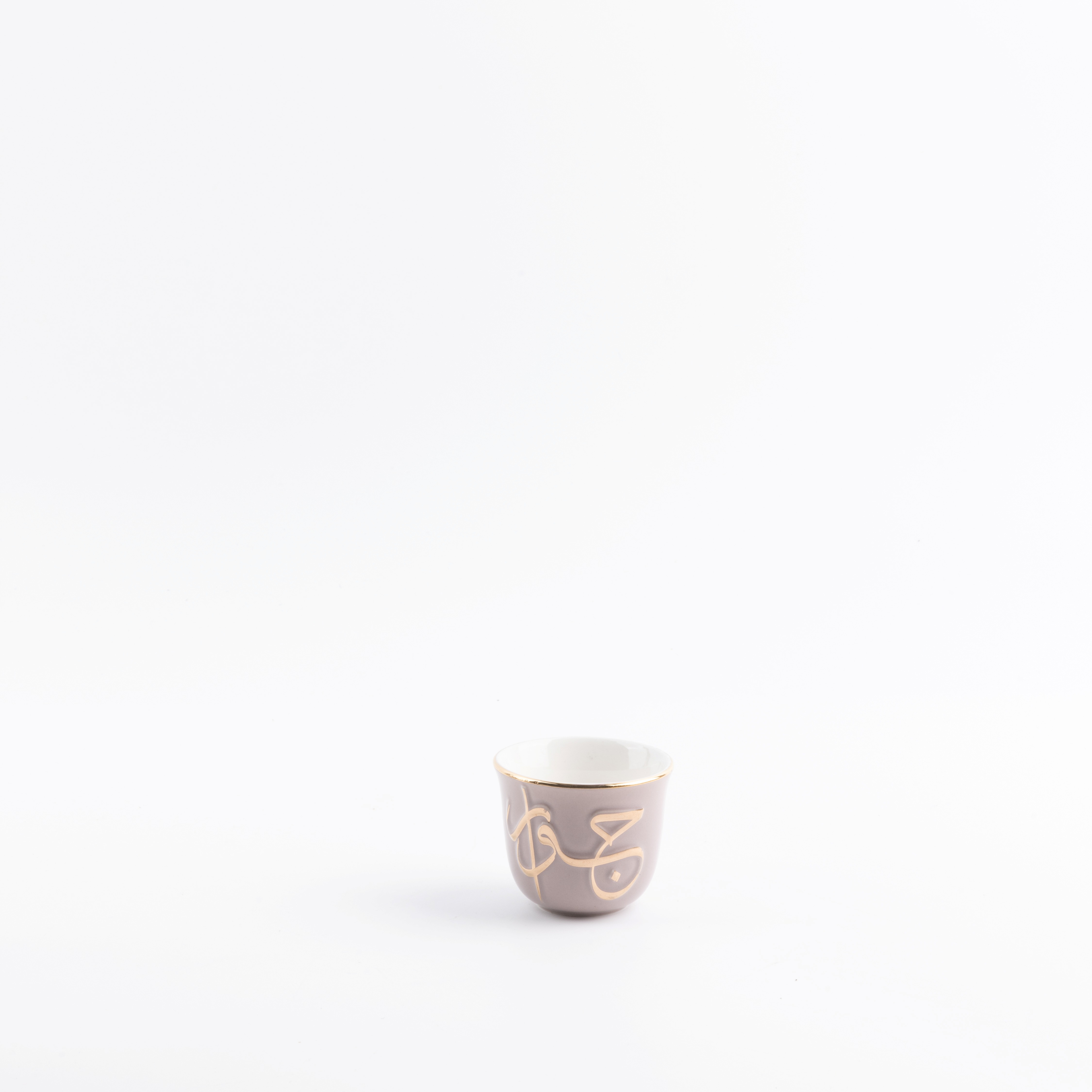 - 6 coffee cups made of porcelain, decorated with raised patterns of the word "Jiwara."