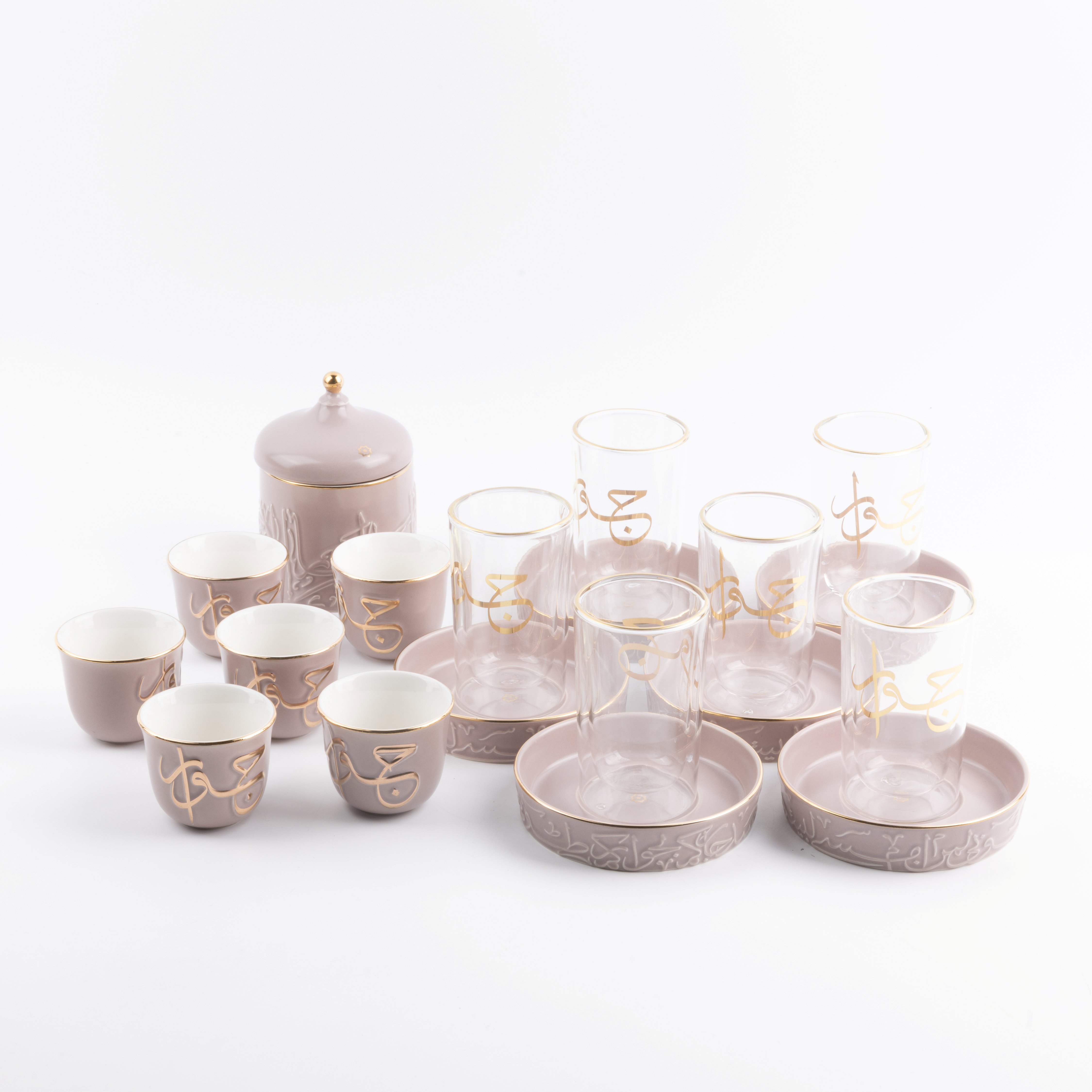 Tea And Arabic Coffee Set 19 Pcs From Jiwar - Purple + Gold