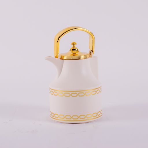 It consists of two pieces in beige and gold
