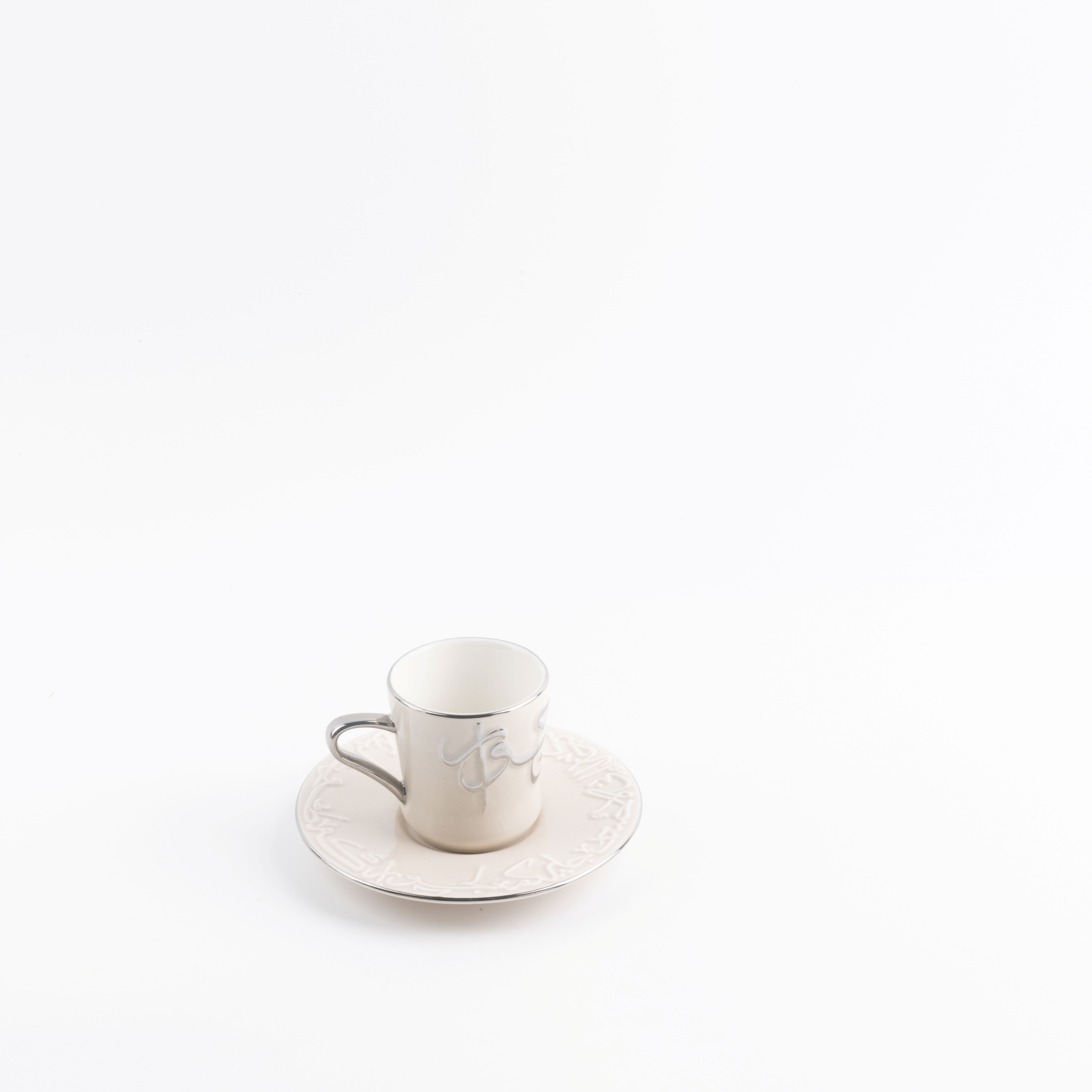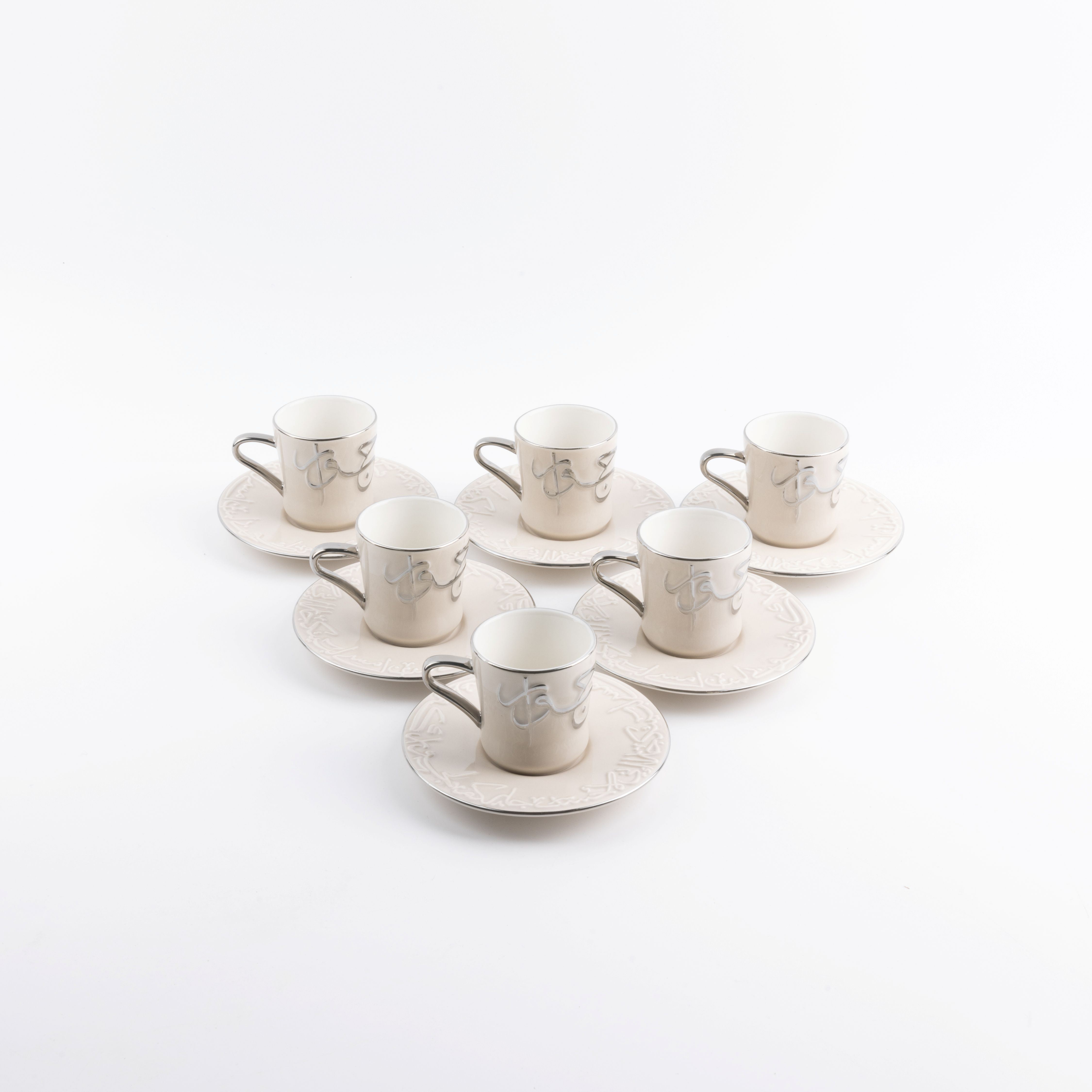 Turkish Coffee Set 12 Pcs From Jiwar - Beige + Silver