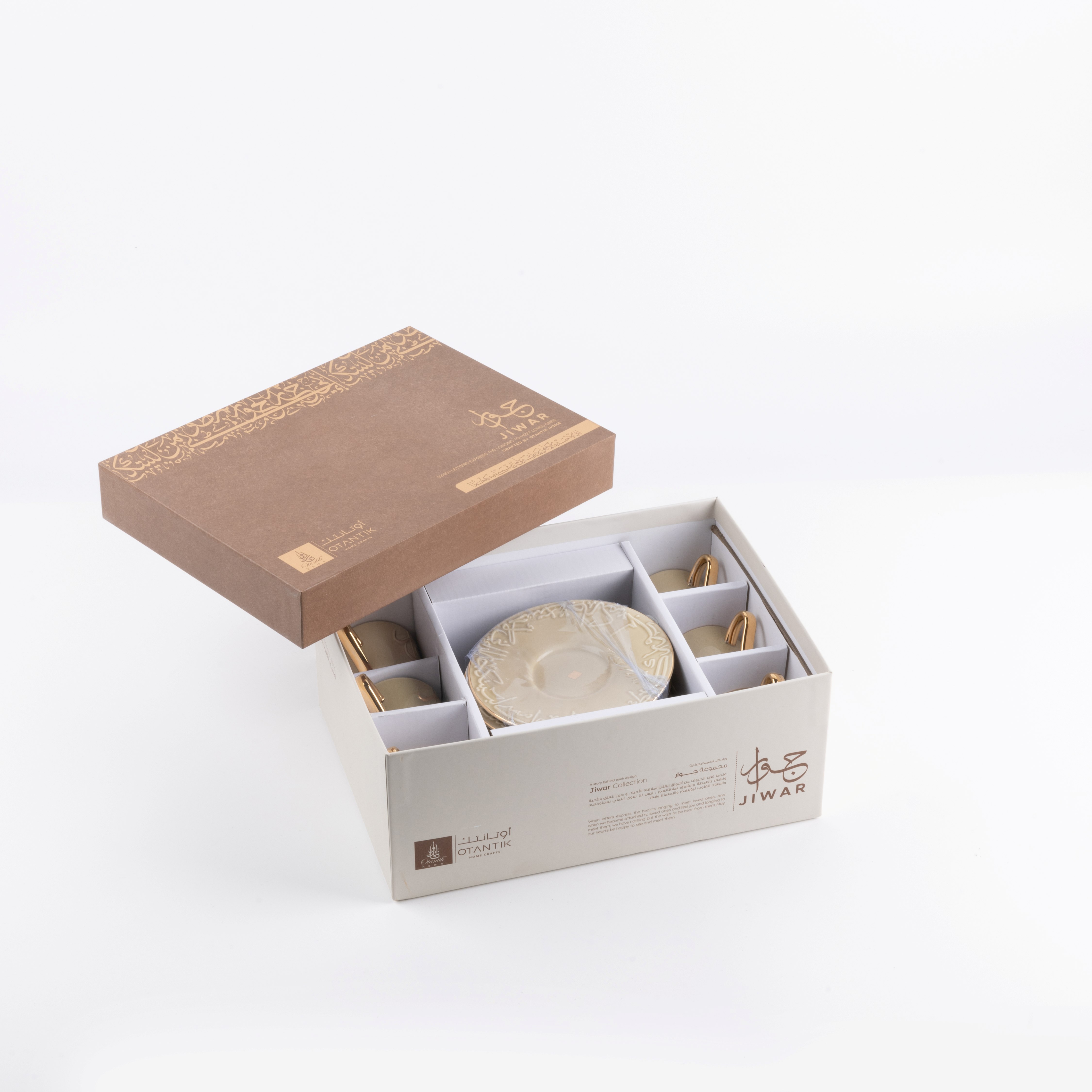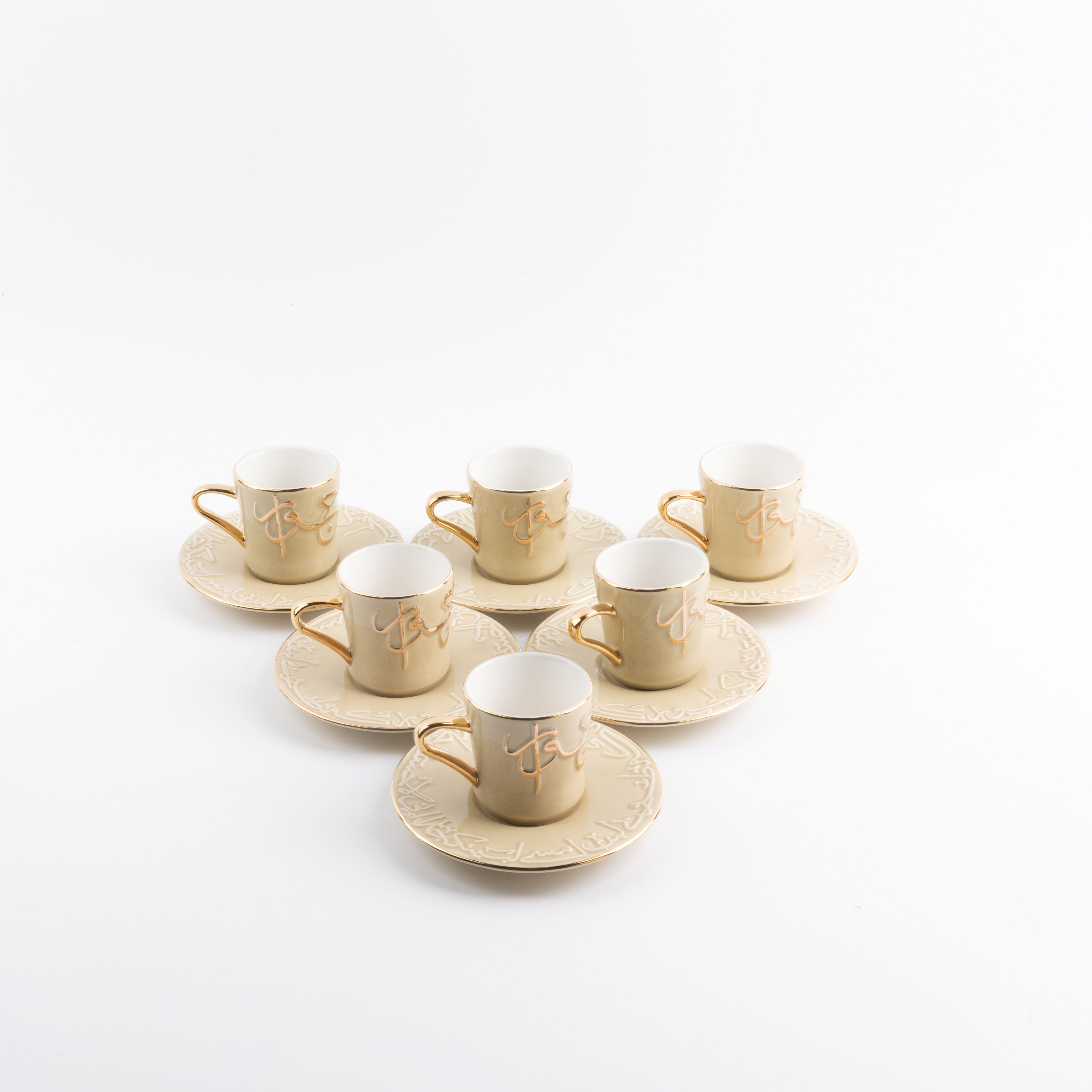 Turkish Coffee Set 12 Pcs From Jiwar - Ivory + Gold