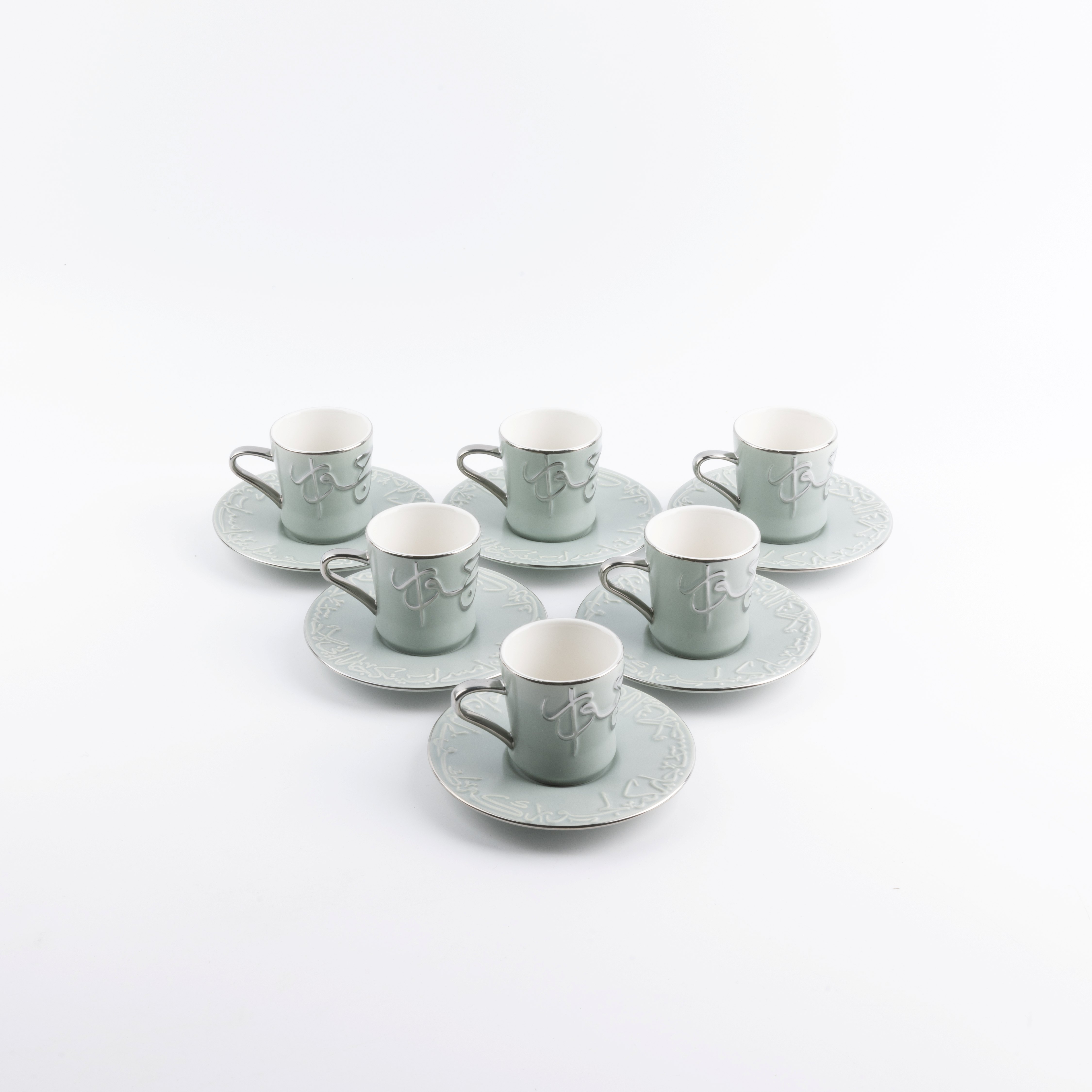 Turkish Coffee Set 12 Pcs From Jiwar - Light Green + Silver