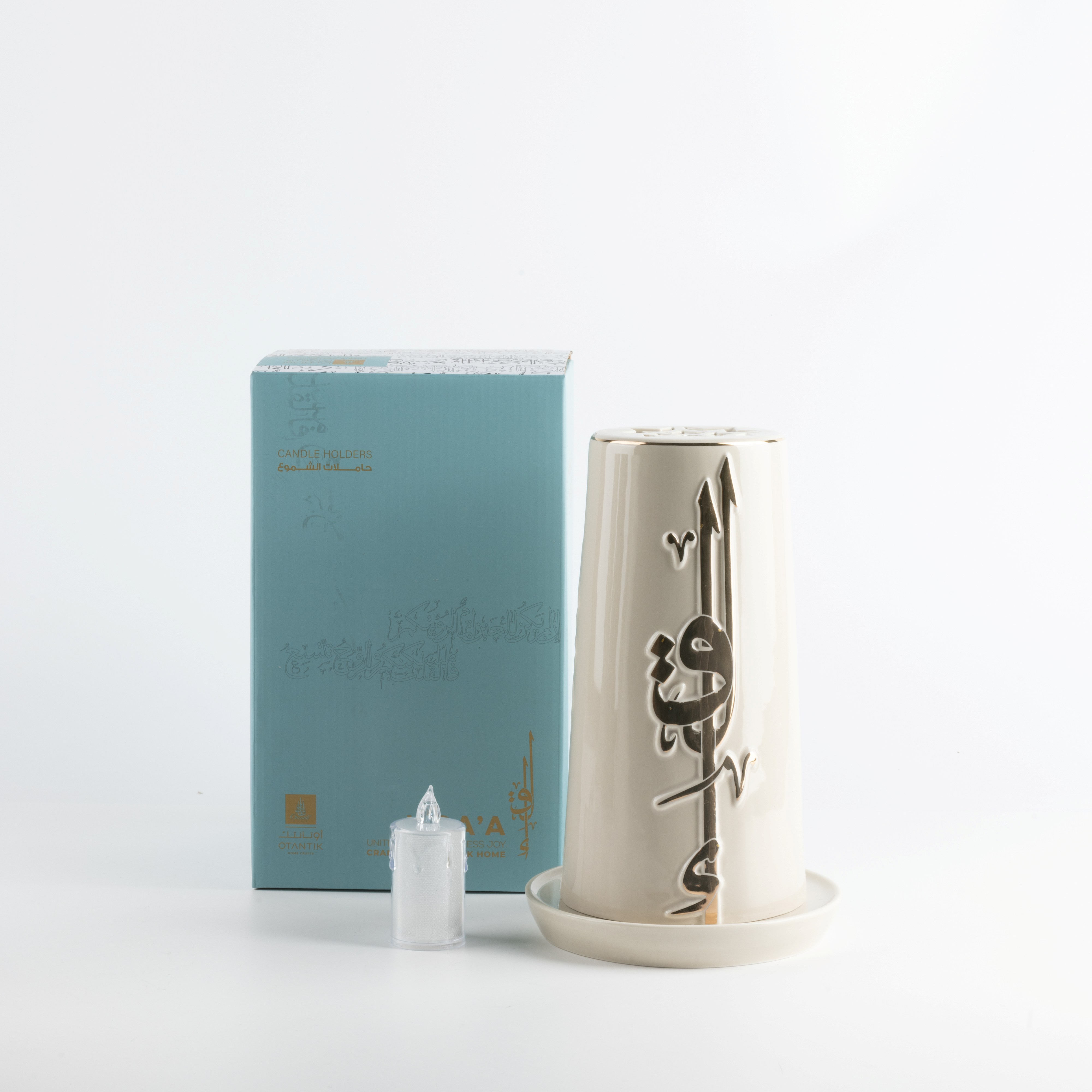 Medium Electronic Candle From Liqaa - Beige + Gold