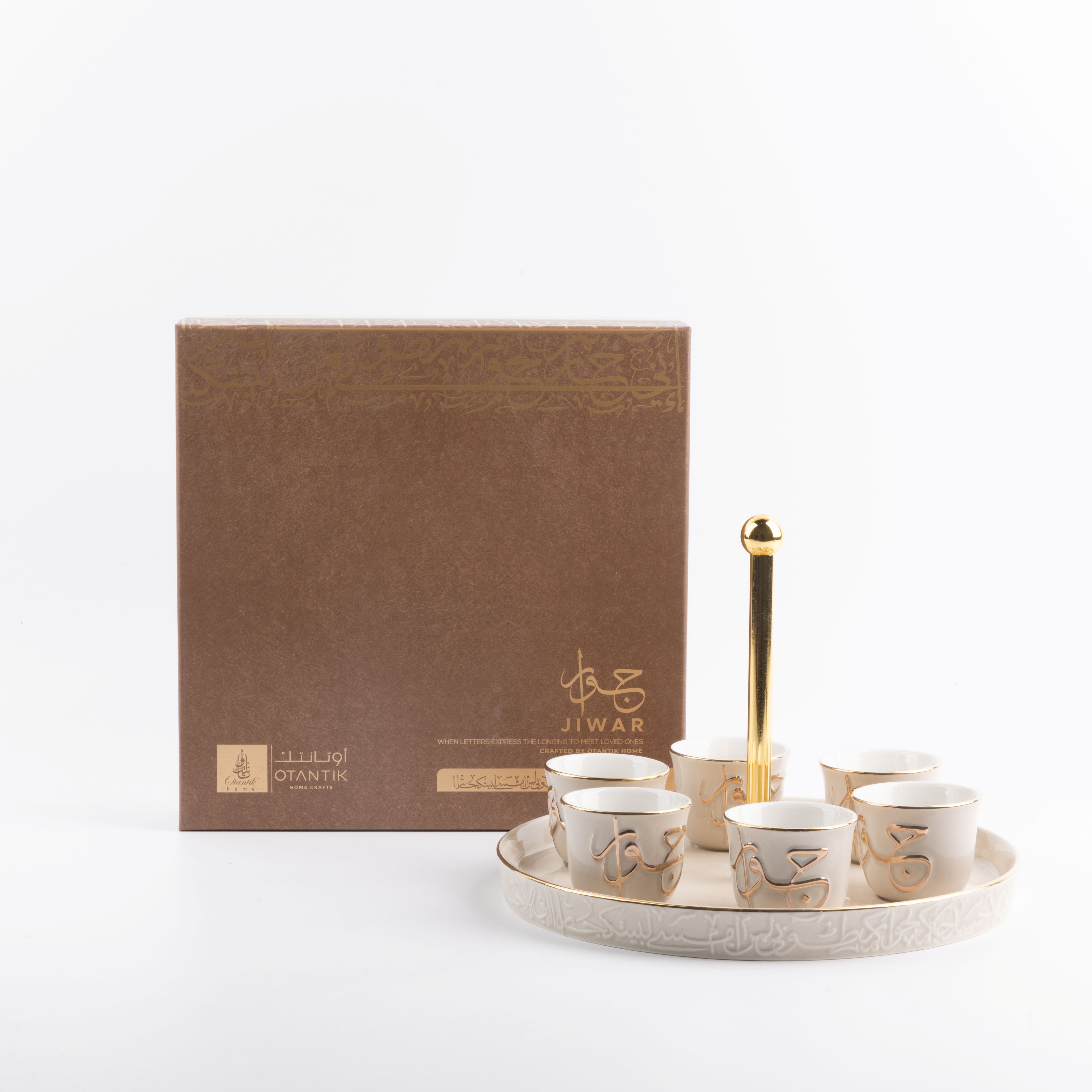 Arabic Coffee Set 7 Pcs From Jiwar - Beige + Gold