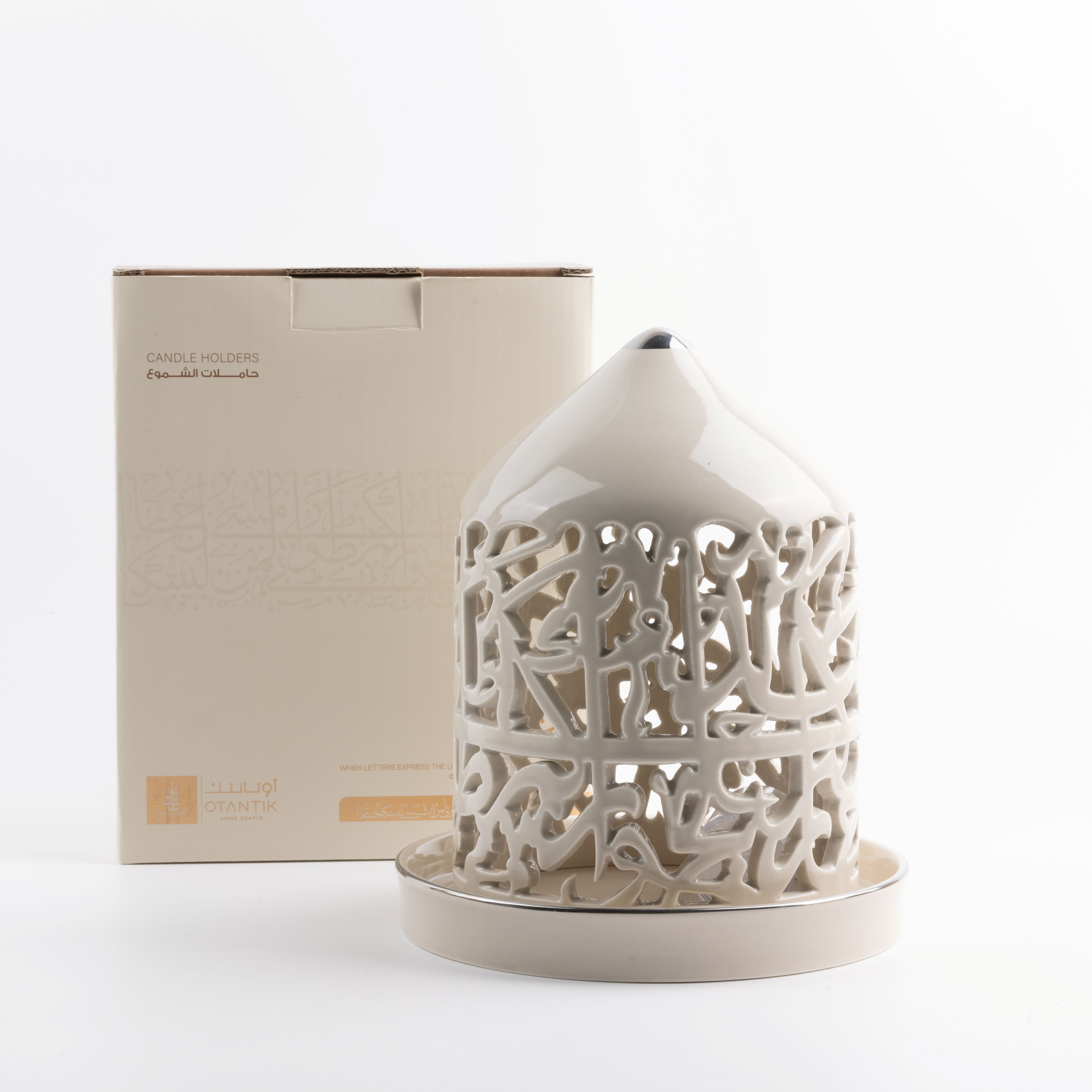 Large Electronic Candle From Jiwar - Beige + Silver