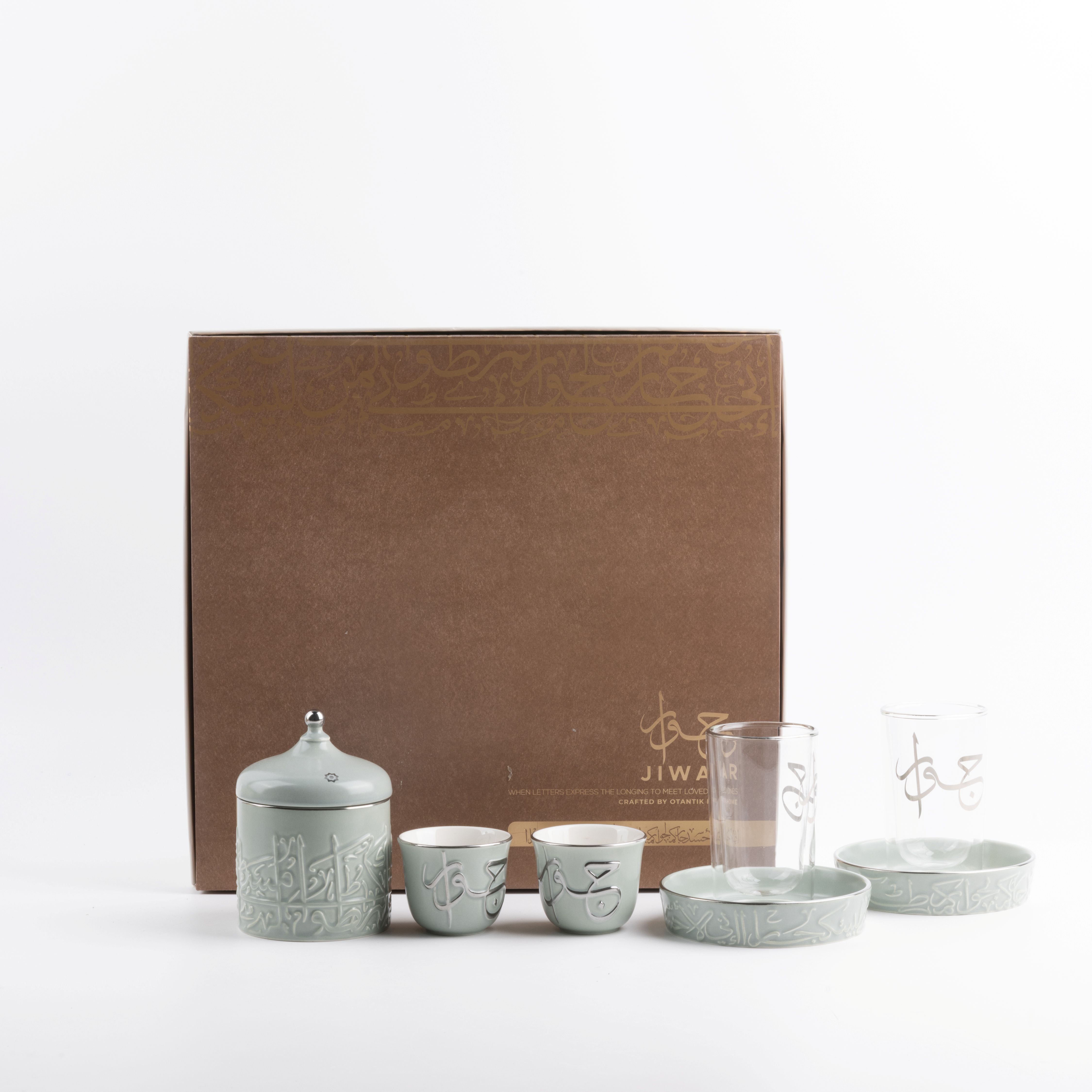 Tea And Arabic Coffee Set 19 Pcs From Jiwar - Light Green + Silver
