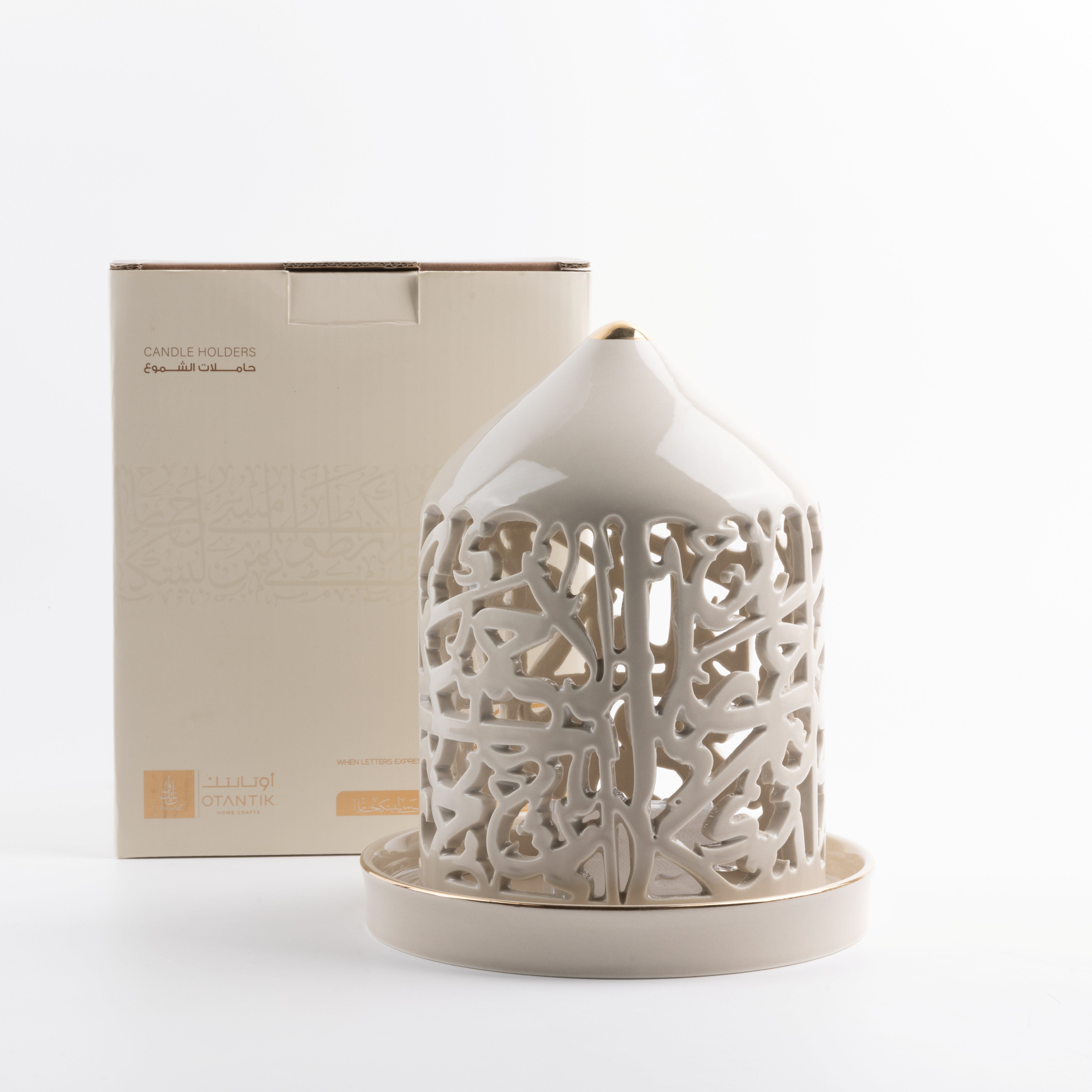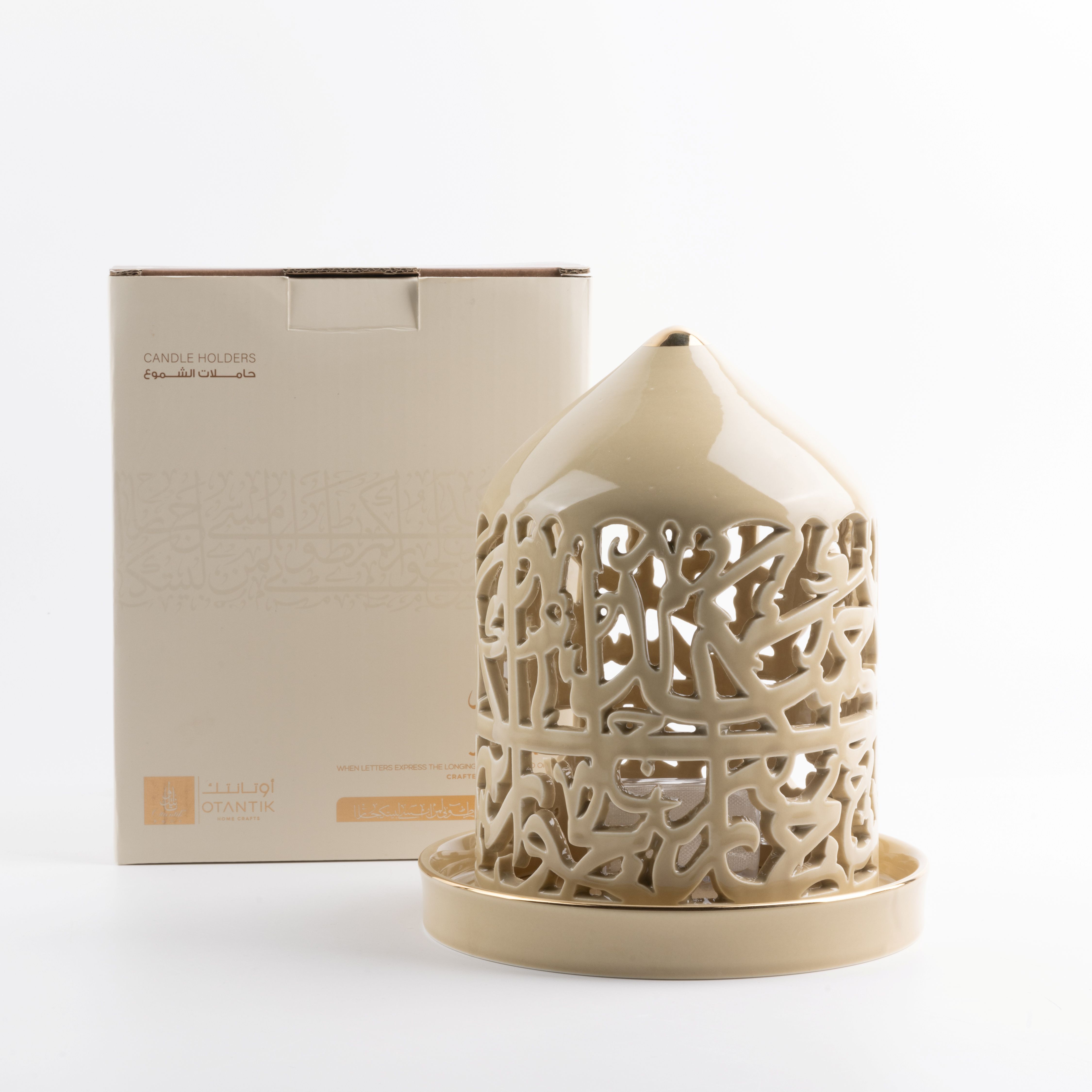 Large Electronic Candle From Jiwar - Beige + Gold