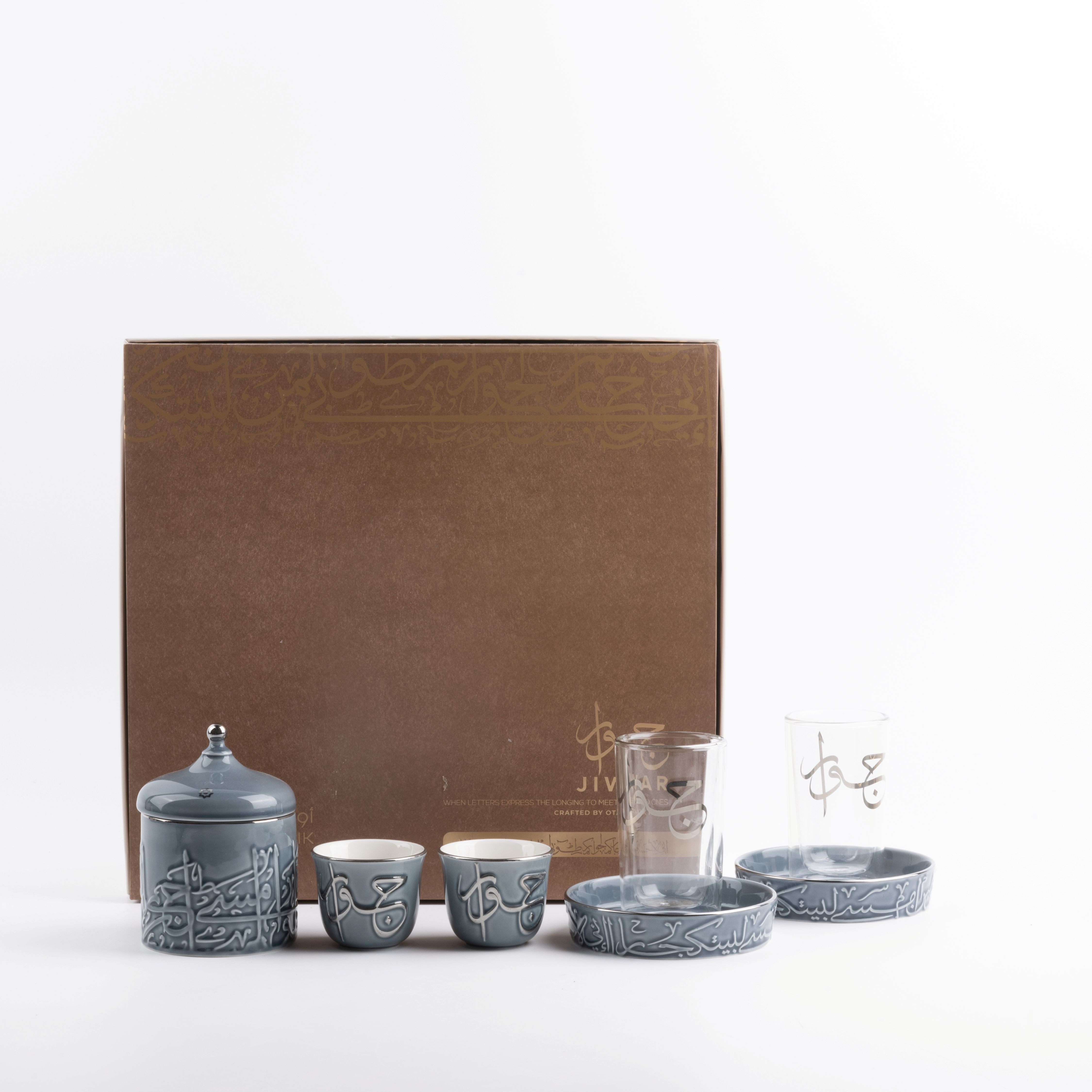 Tea And Arabic Coffee Set 19 Pcs From Jiwar - Blue + Silver