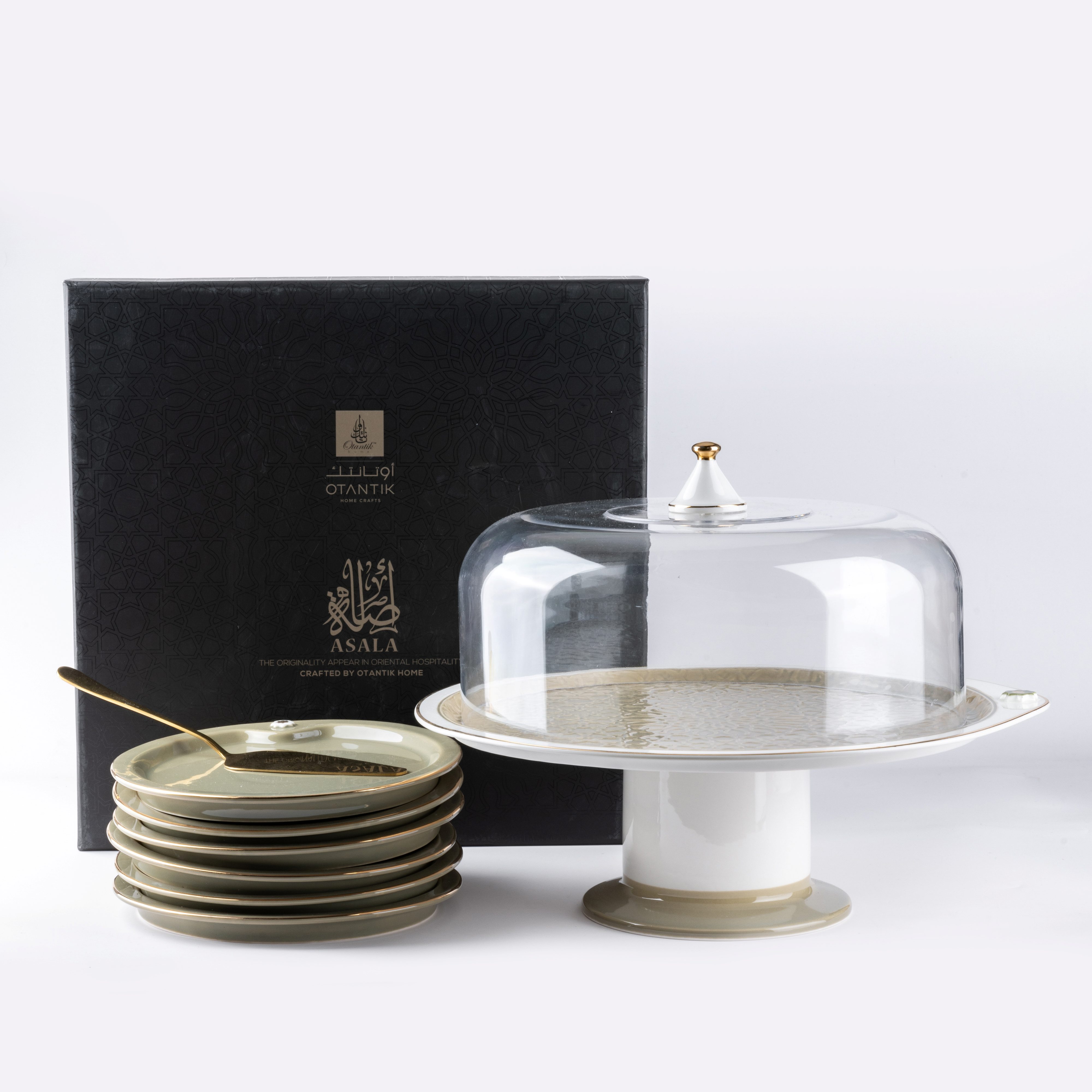 Cake Serving Set 9pcs From Asalah - Olive + Gold