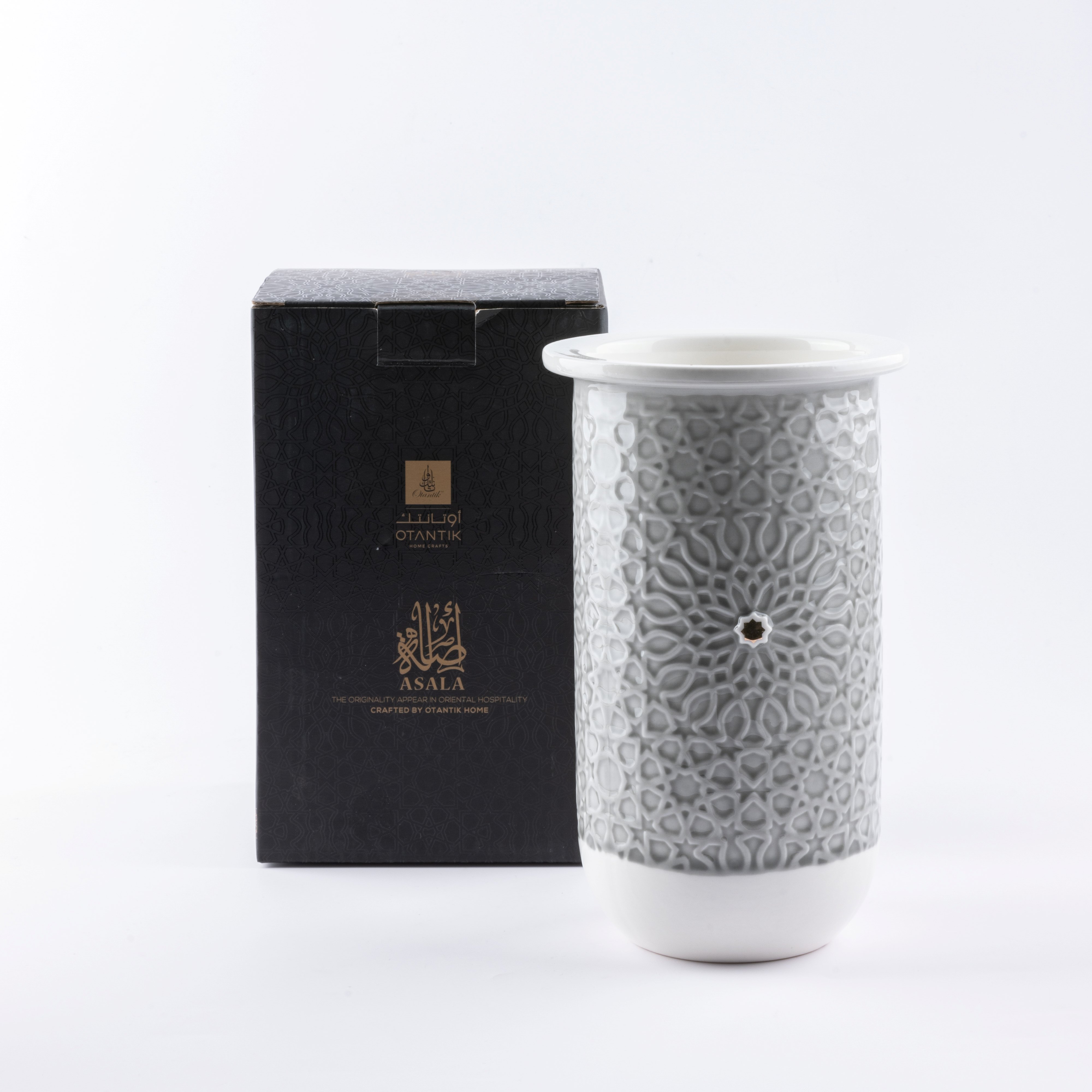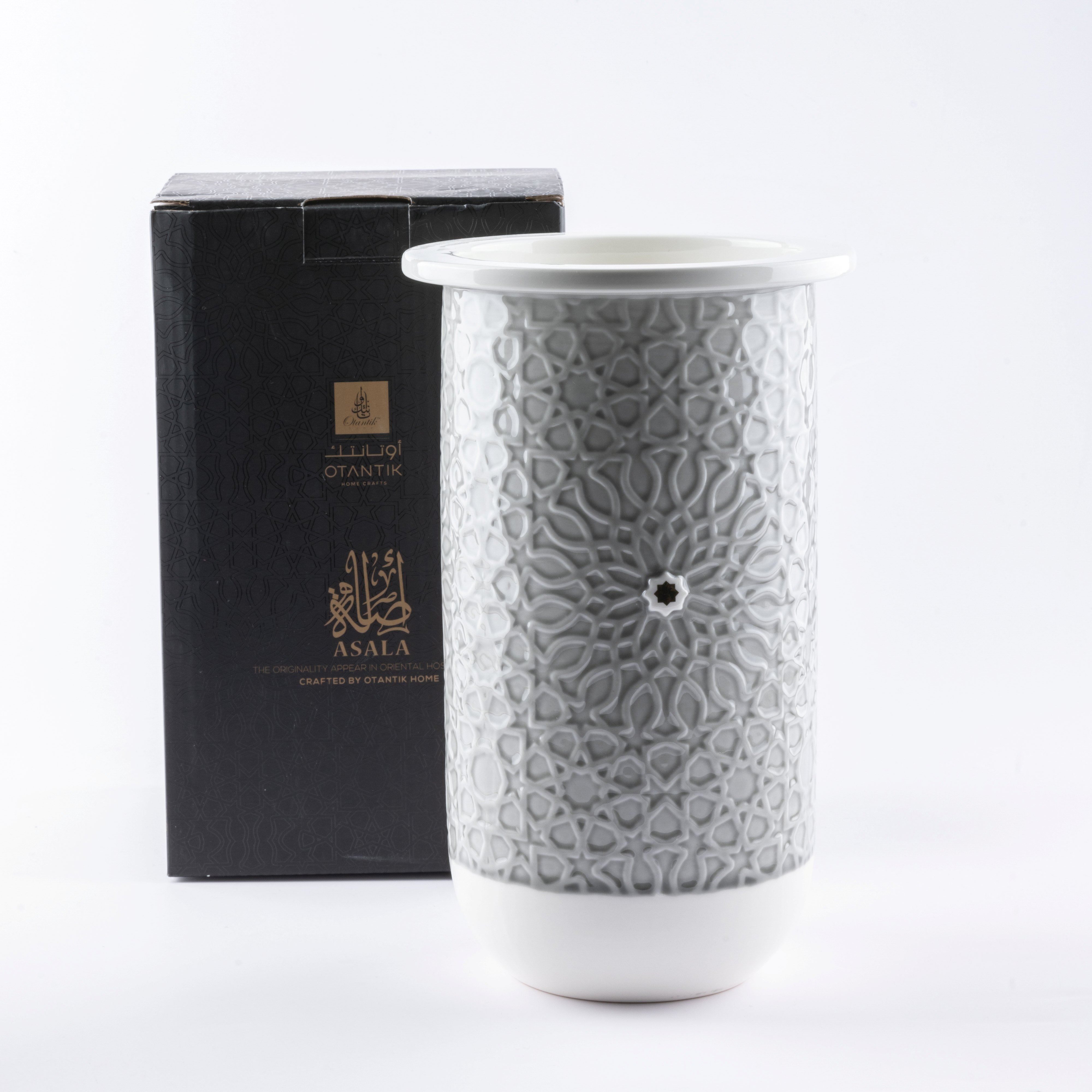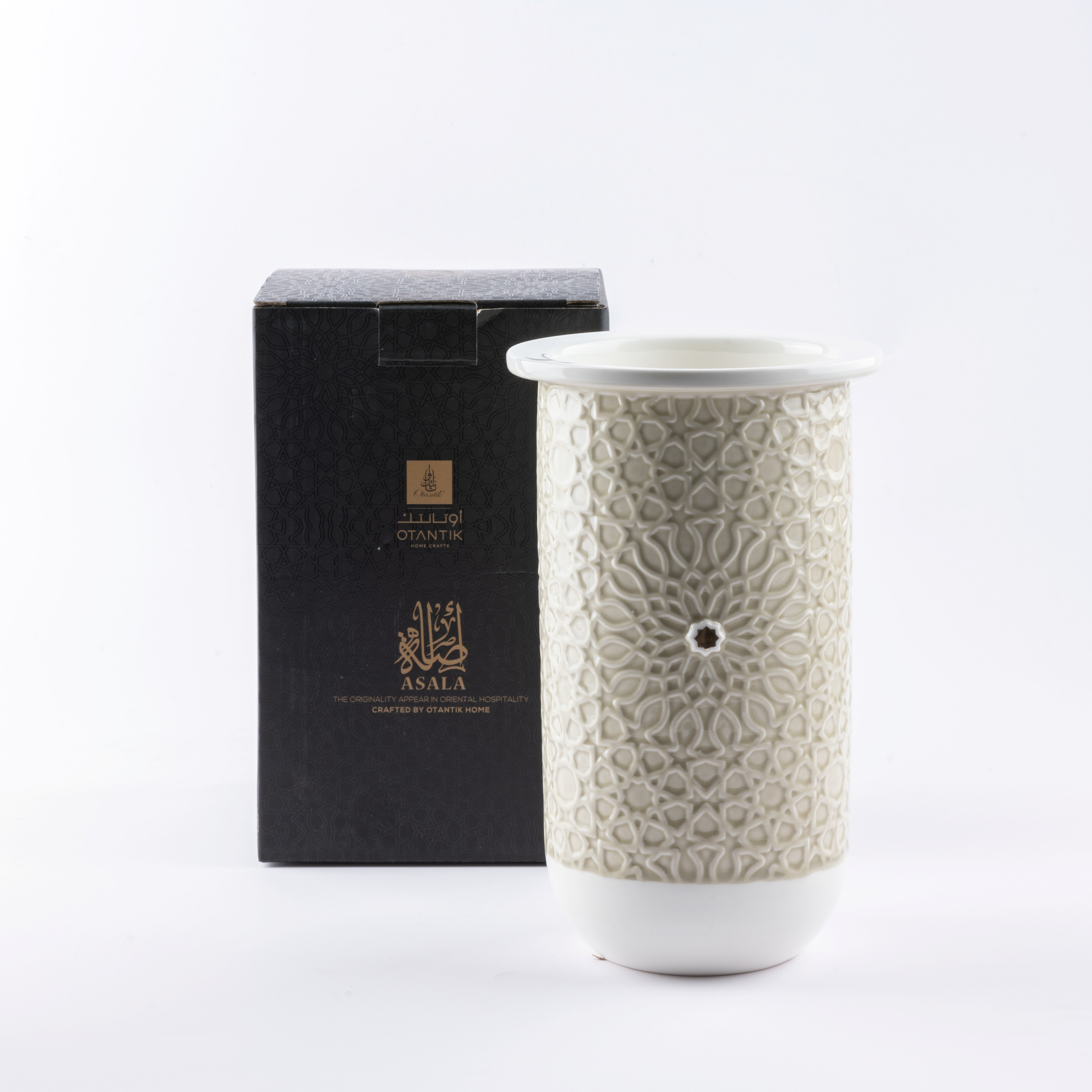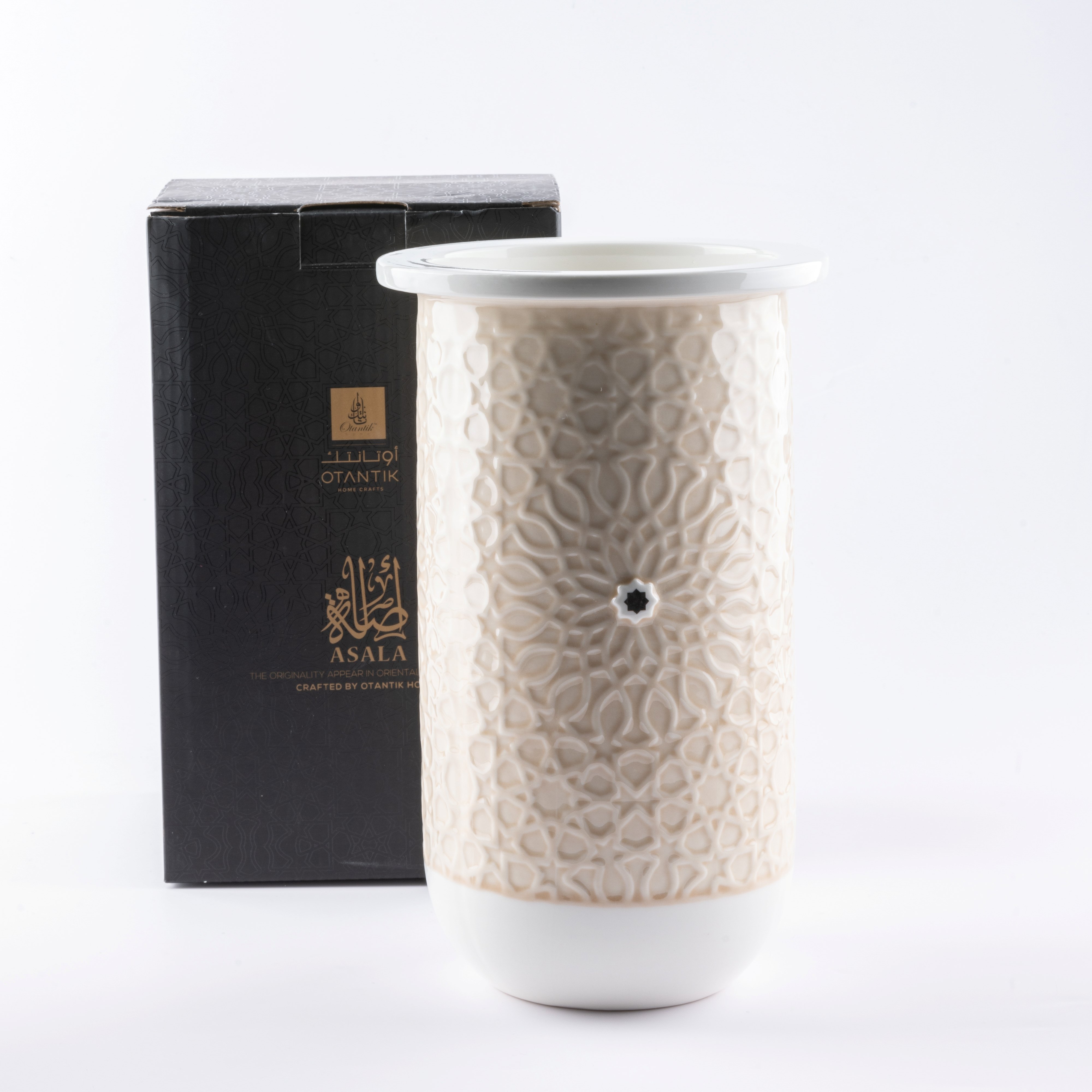 Large Porcelain Vase From Asalah - Creamy + Silver