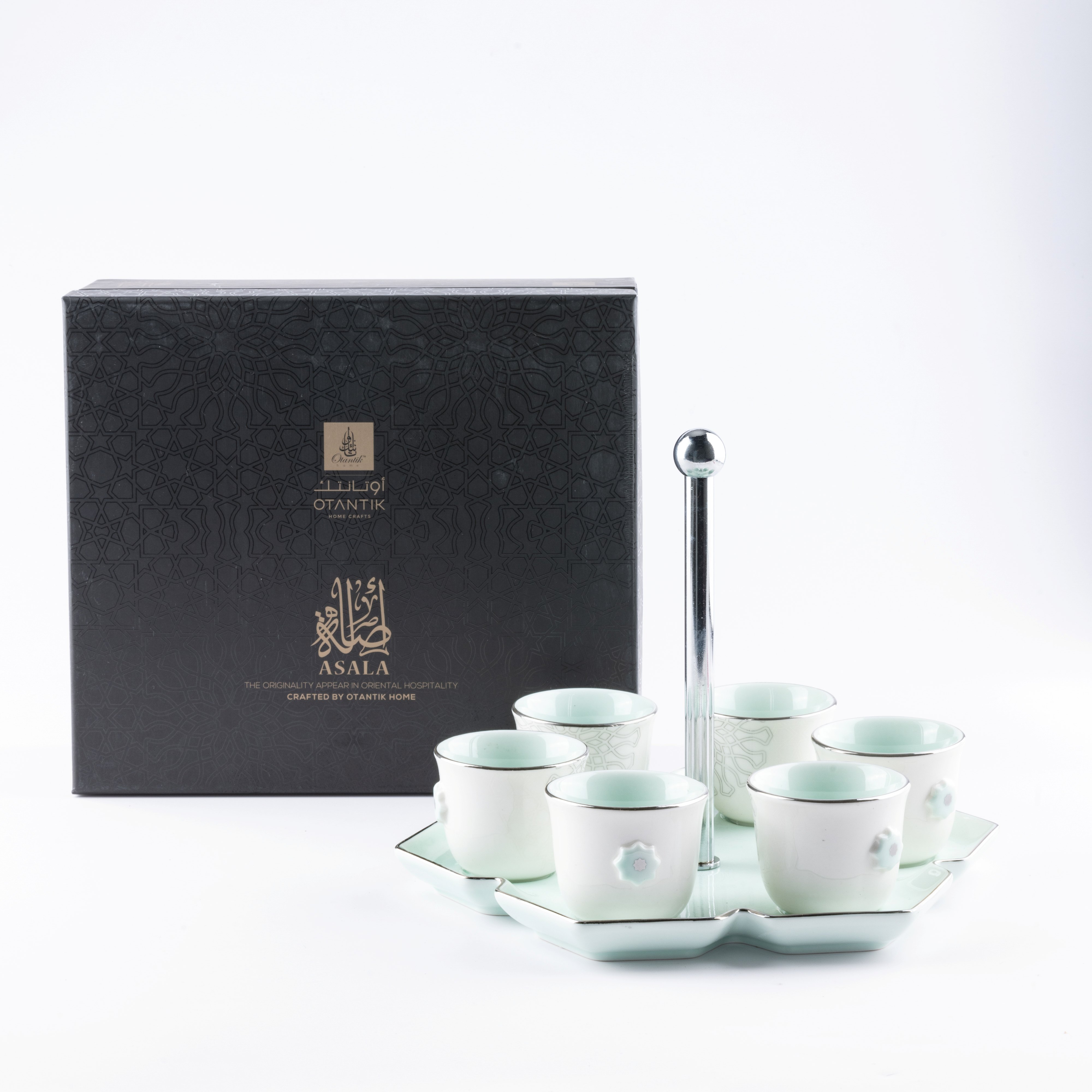 Luxury Arabic Coffee Set With Stand From Asalah - Teal + Silver