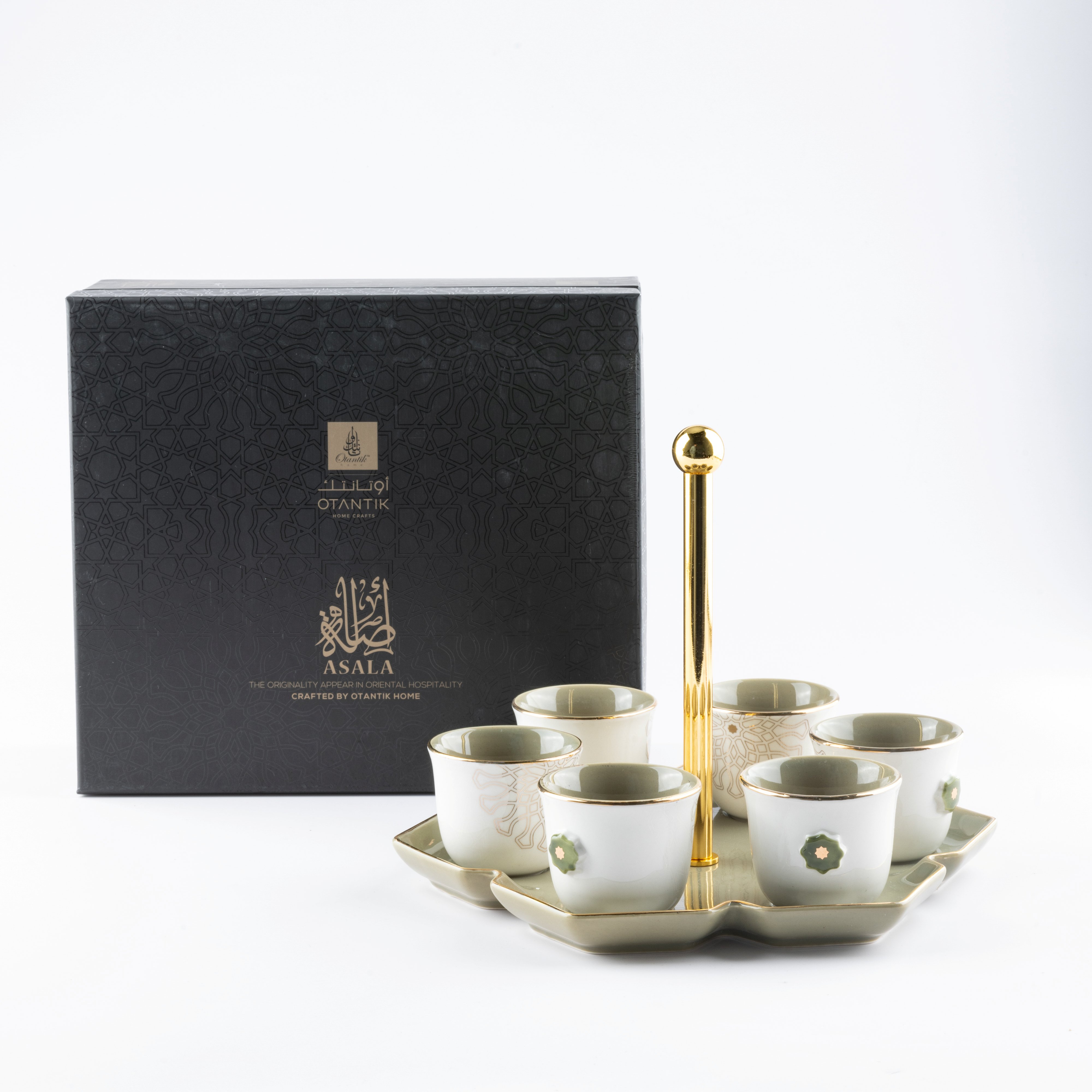 Luxury Arabic Coffee Set With Stand From Asalah - Olive + Gold