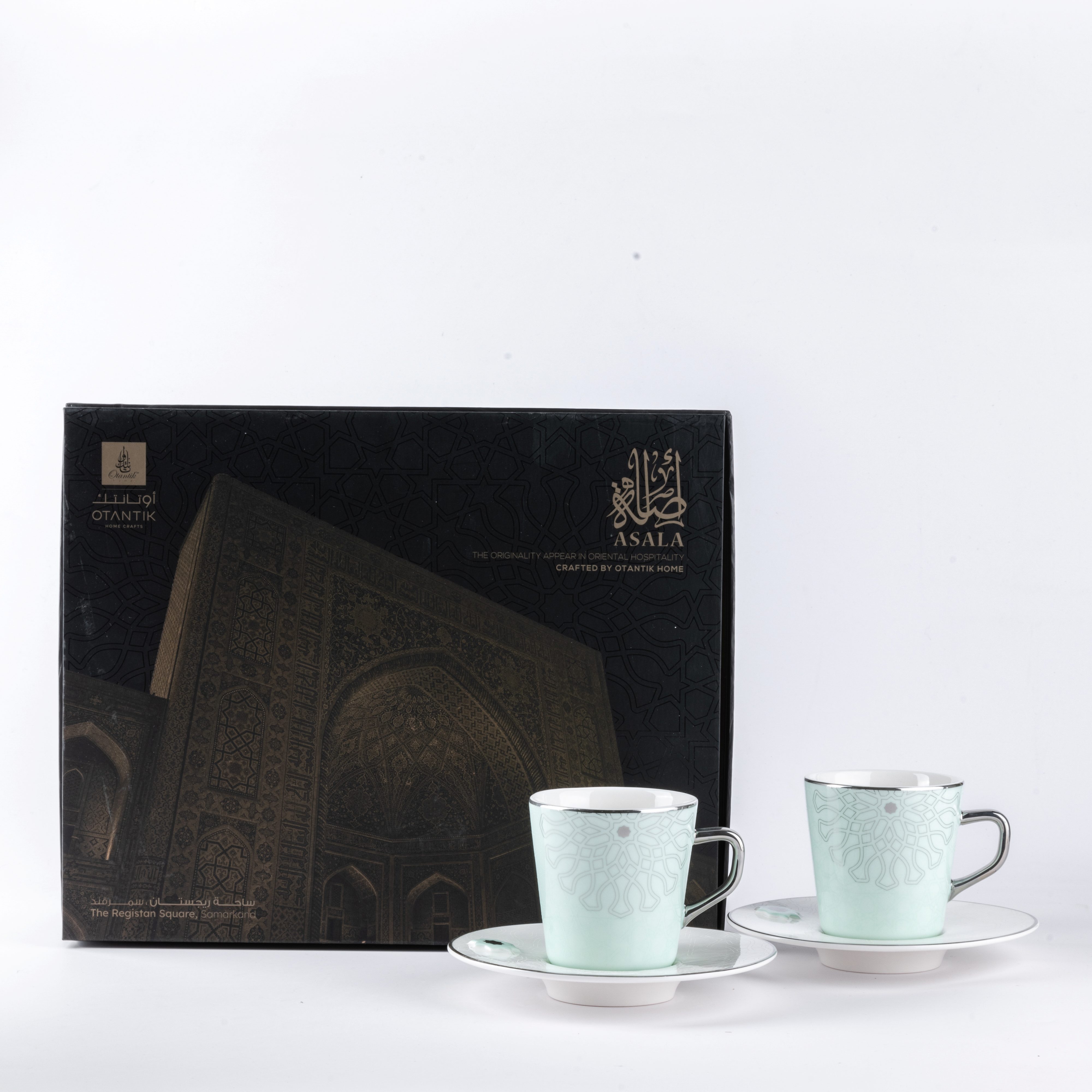 Turkish Coffee Set 12pcs From Asalah - Teal + Silver