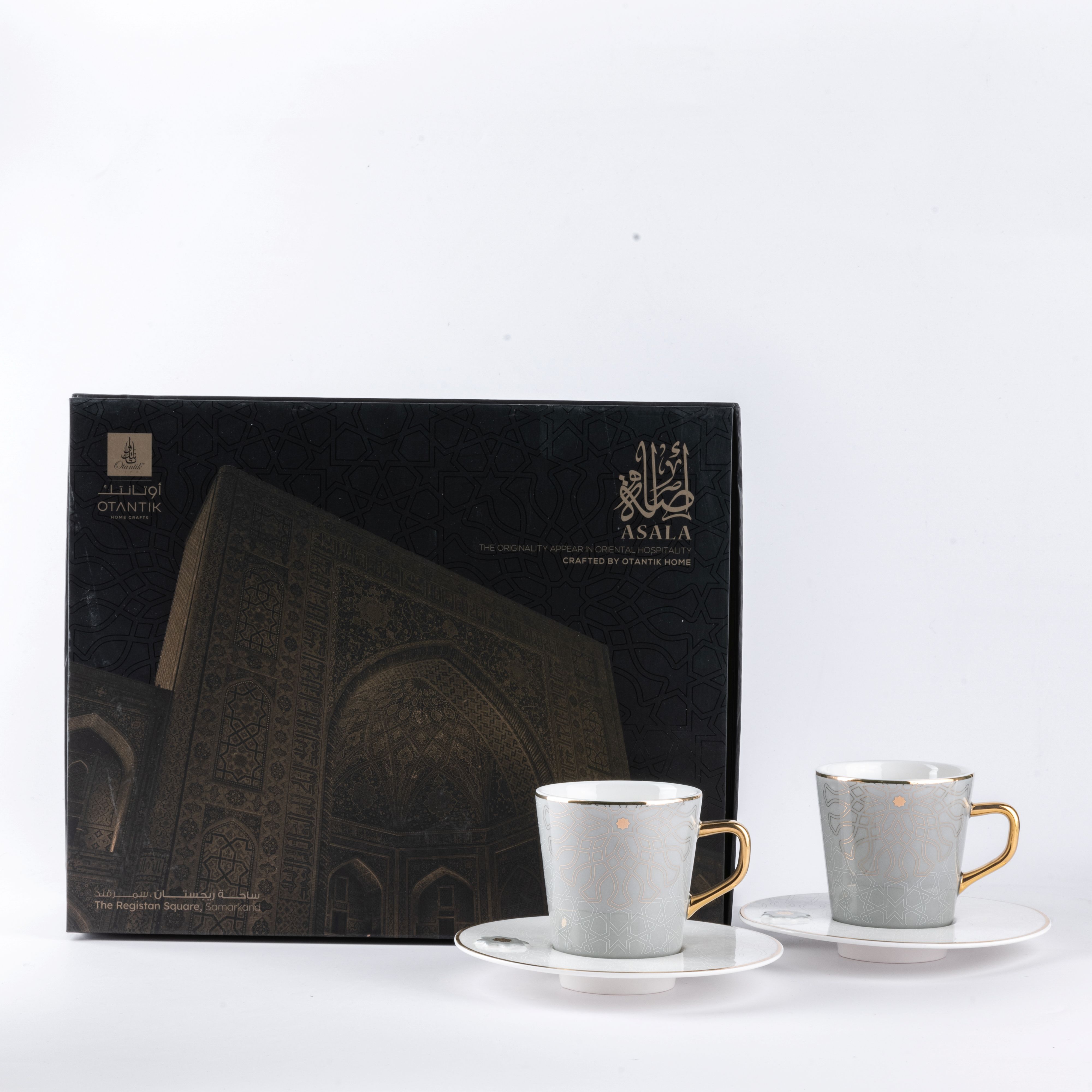 Turkish Coffee Set 12pcs From Asalah - Grey + Gold