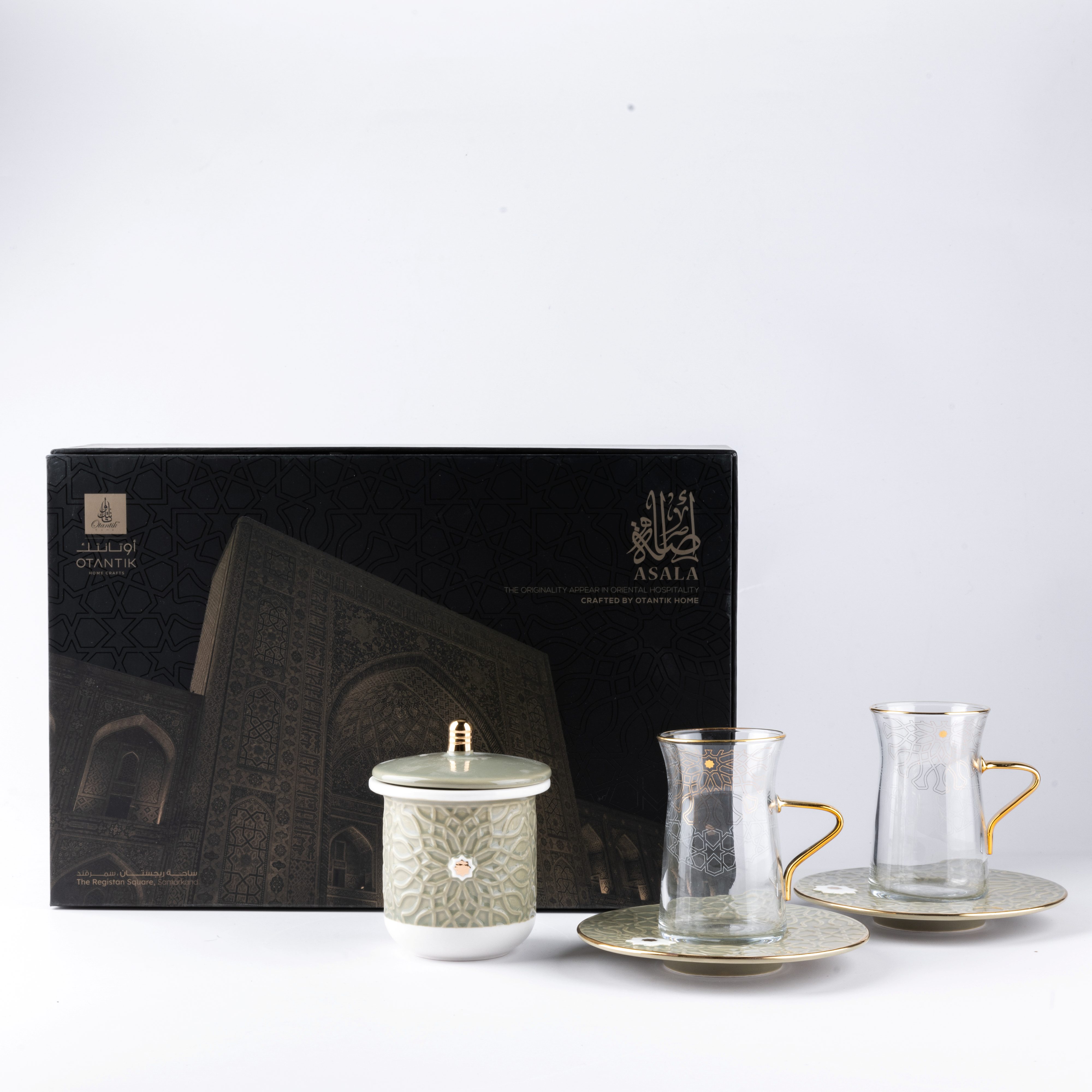 Tea Glass Set 13 Pcs From Asalah - Olive + Gold