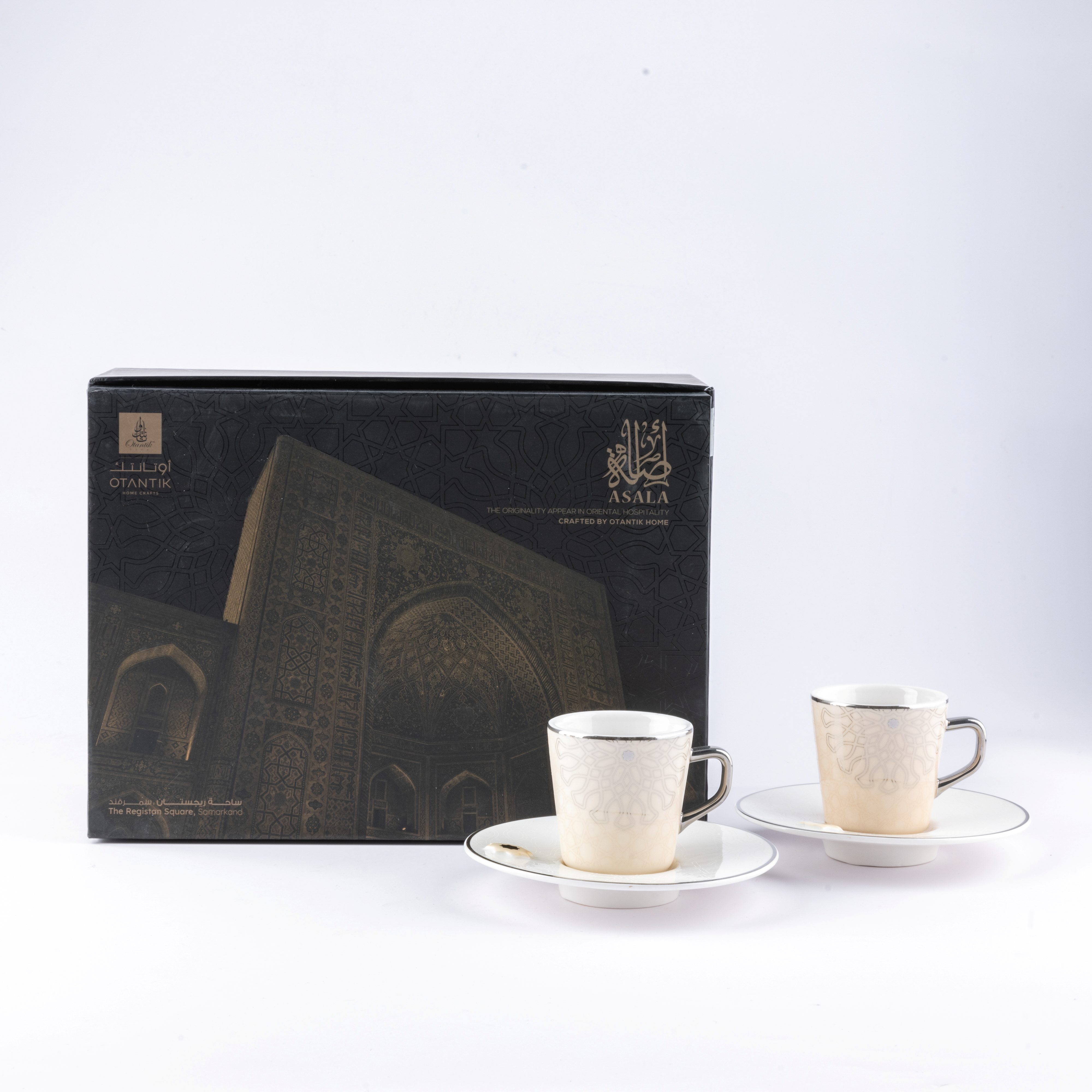 Turkish Coffee Set 12pcs From Asalah - Creamy + Silver
