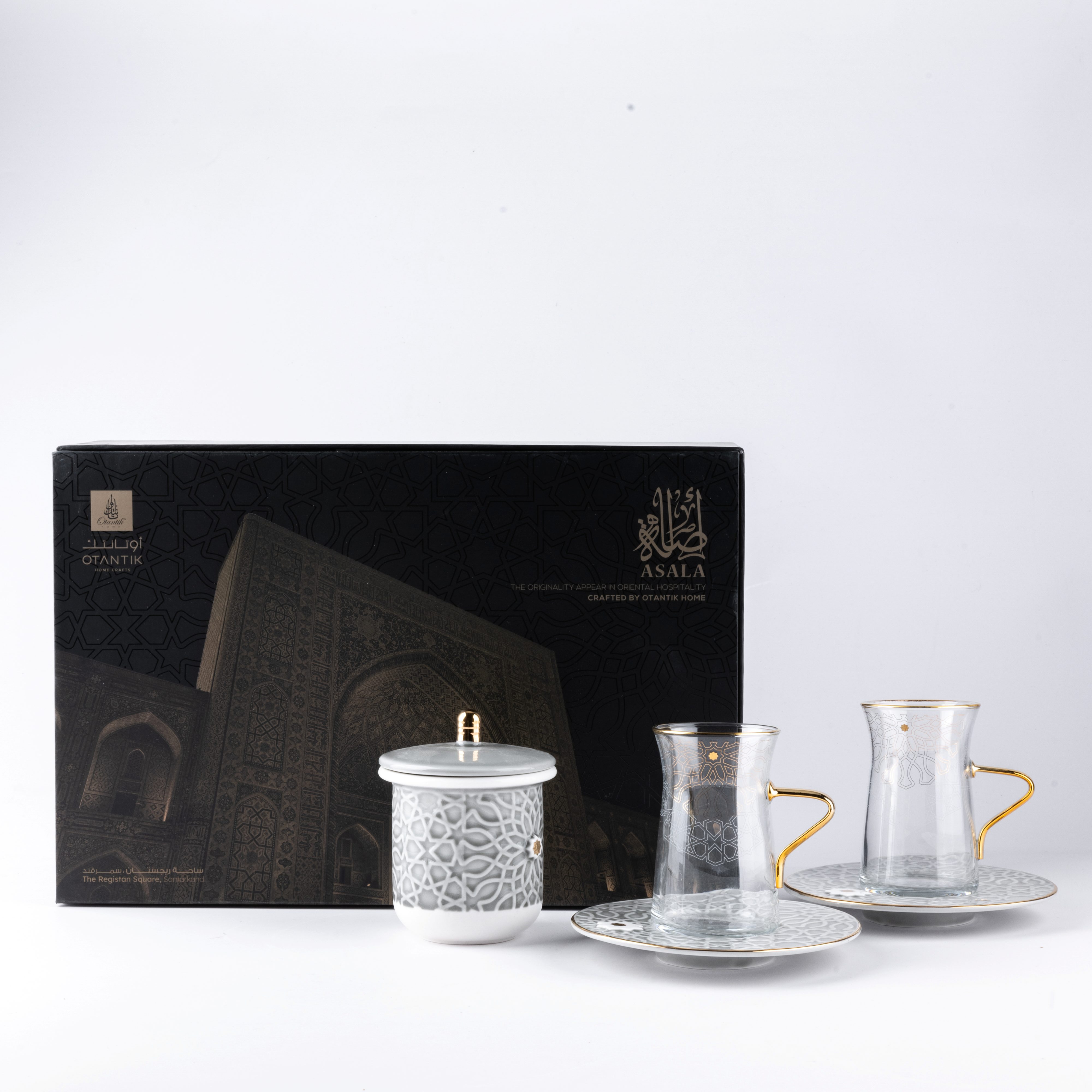 Tea Glass Set 13 Pcs From Asalah - Grey + Gold