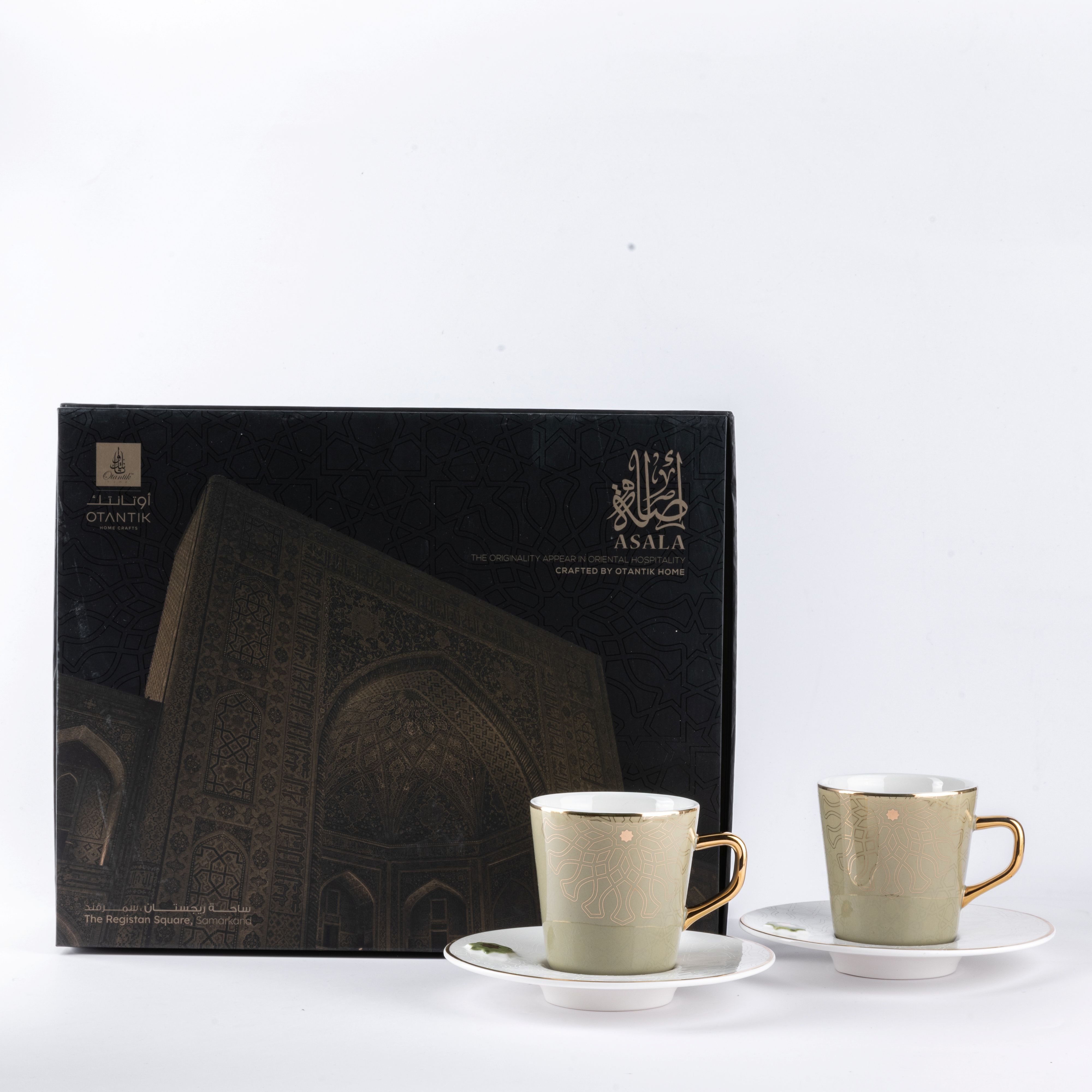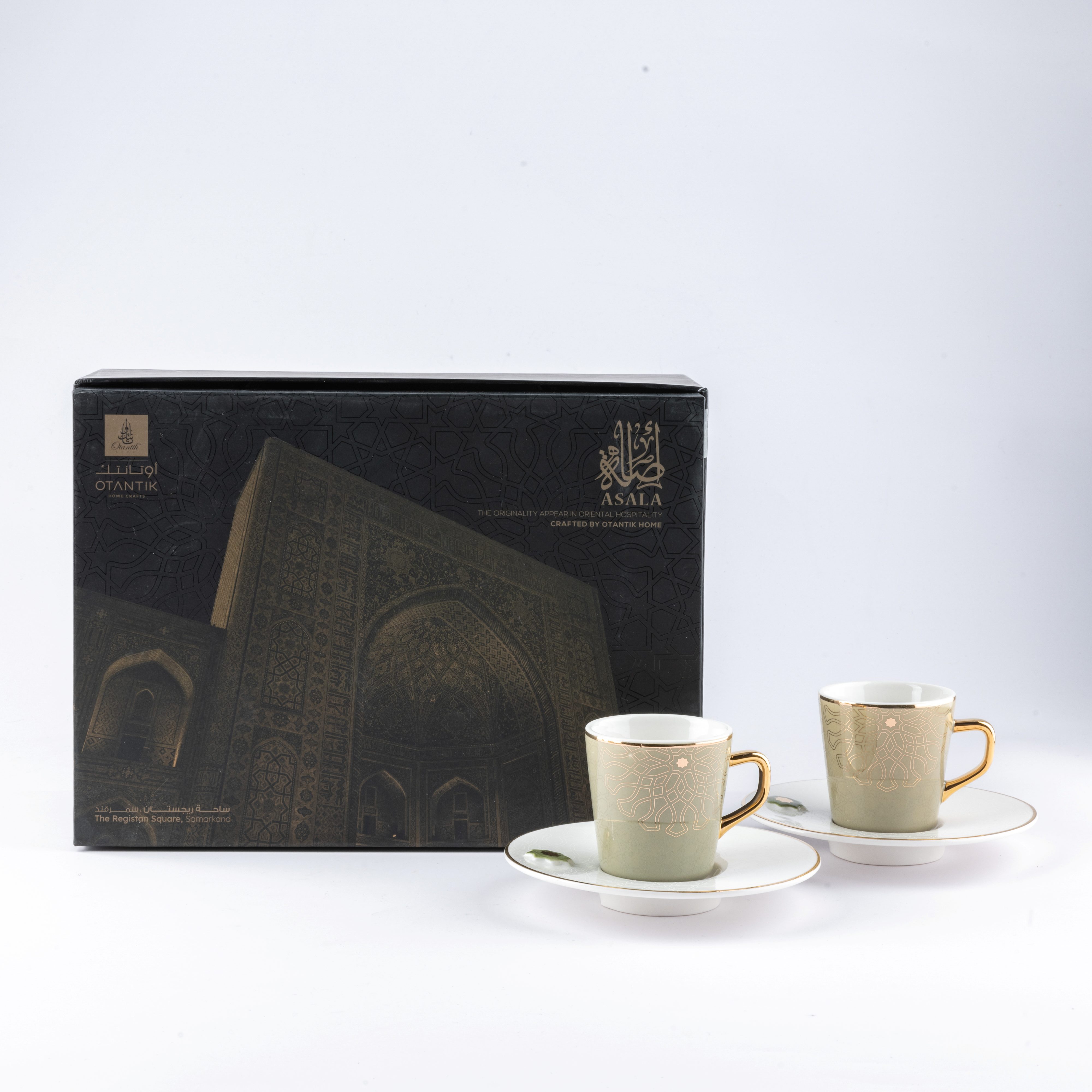 Turkish Coffee Set 12pcs From Asalah - Olive + Gold