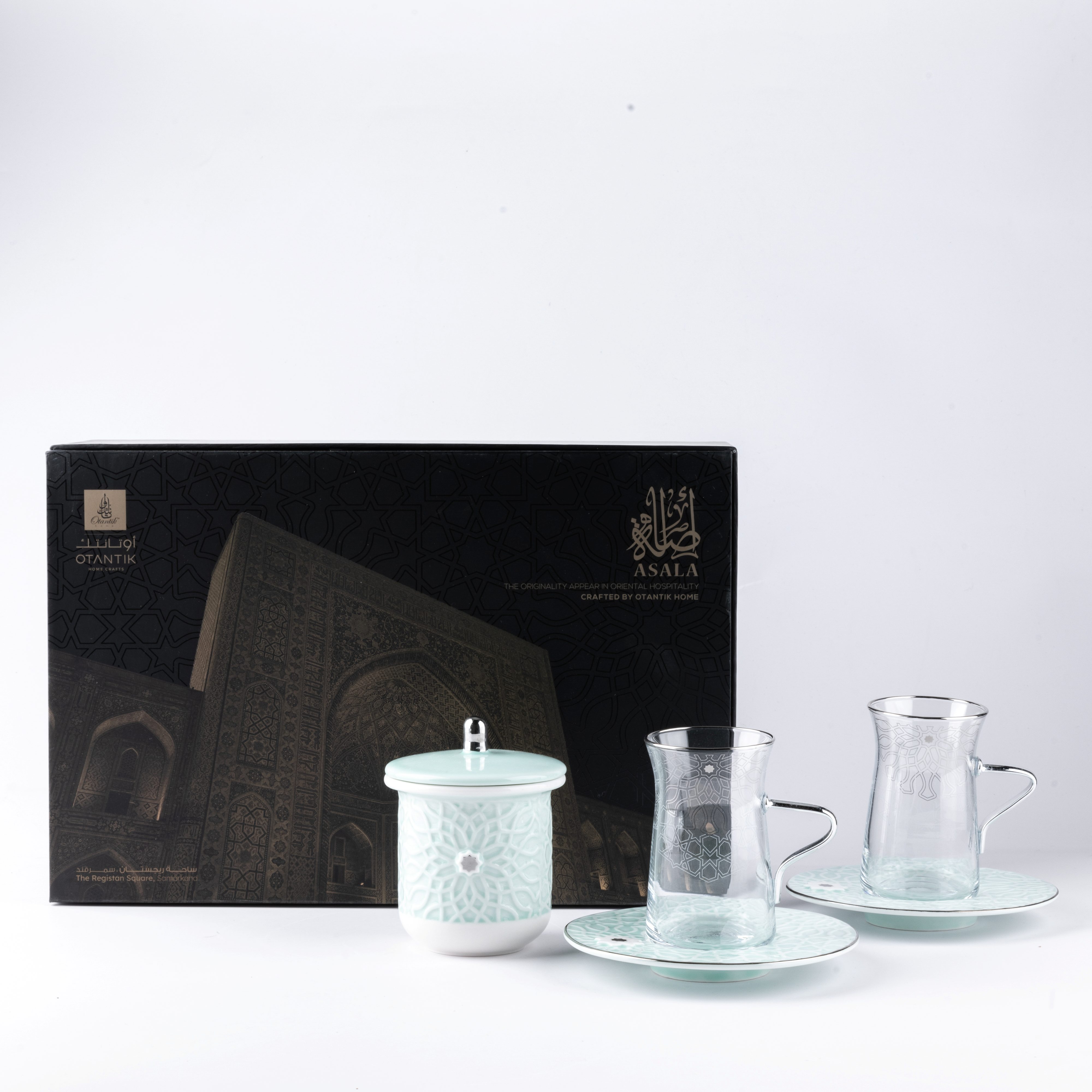 Tea Glass Set 13 Pcs From Asalah - Teal + Silver