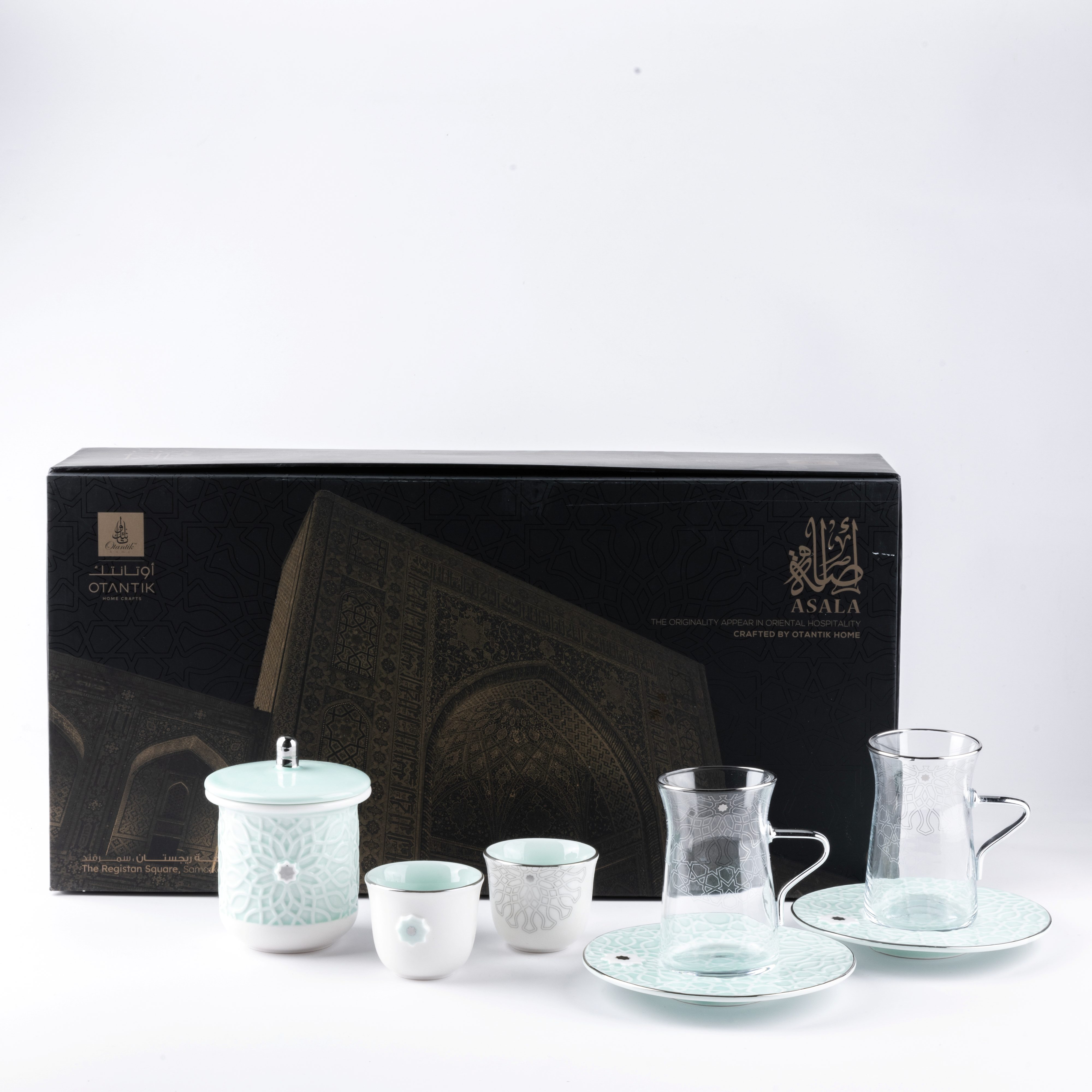 Tea And Arabic Coffee Set 19 pcs From Asalah - Teal + Silver