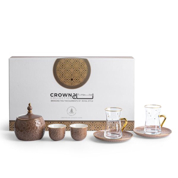 Tea And Arabic Coffee Set 19Pcs From Crown - Brown