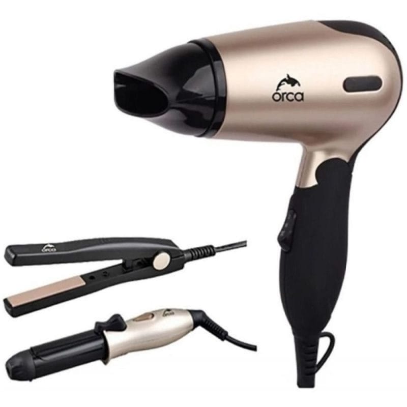 Mini Hair Dryer, Straightener and Curler - Black by Orca